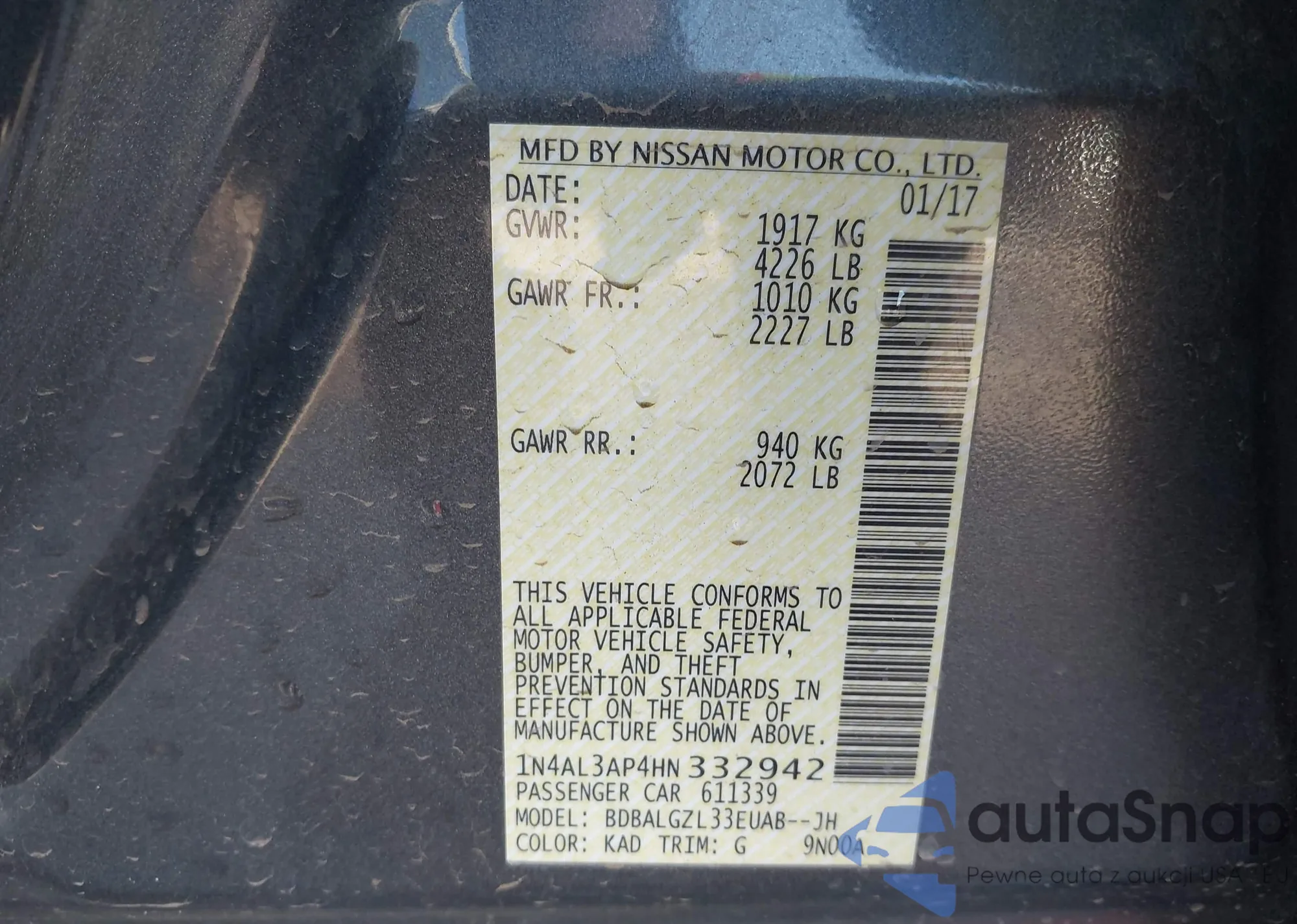 LOT: 43779810 VIN: 1N4AL3AP2FC249664