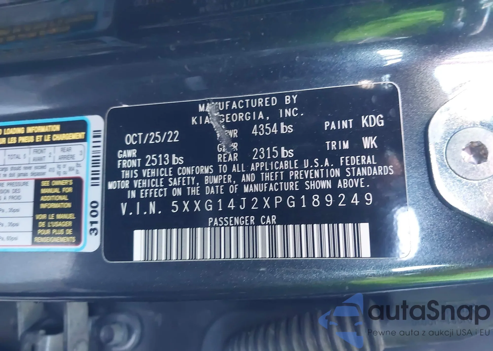 LOT: 43698607 VIN: 3KPF24AD0PE565203
