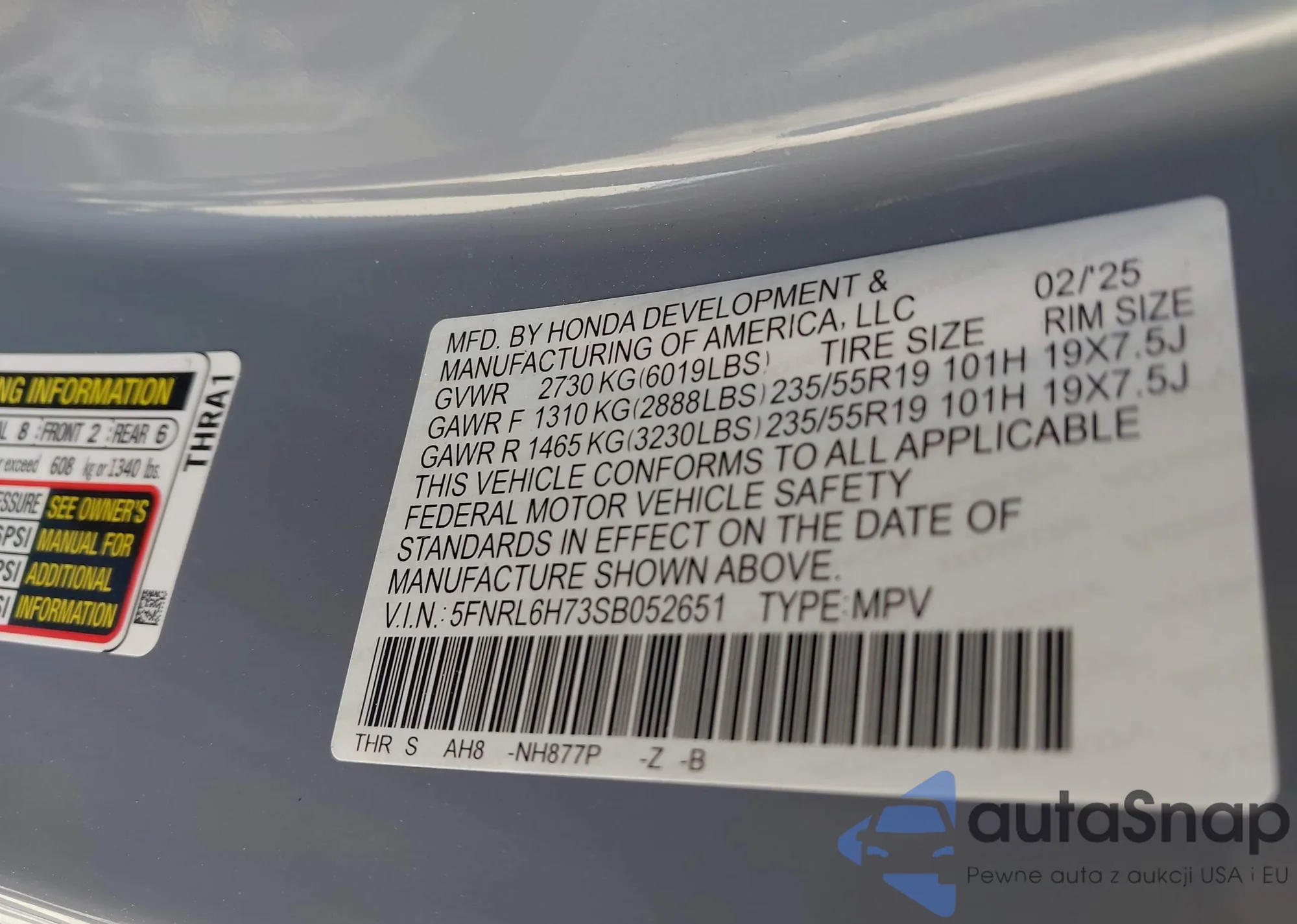 • VIN 5FNRL38748B101508