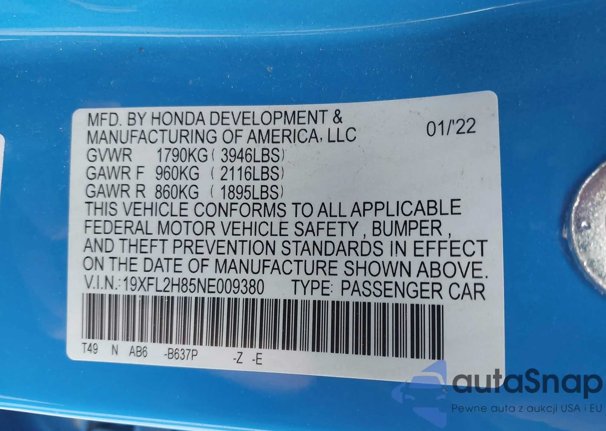 • VIN 2HKRW2H90HH614677
