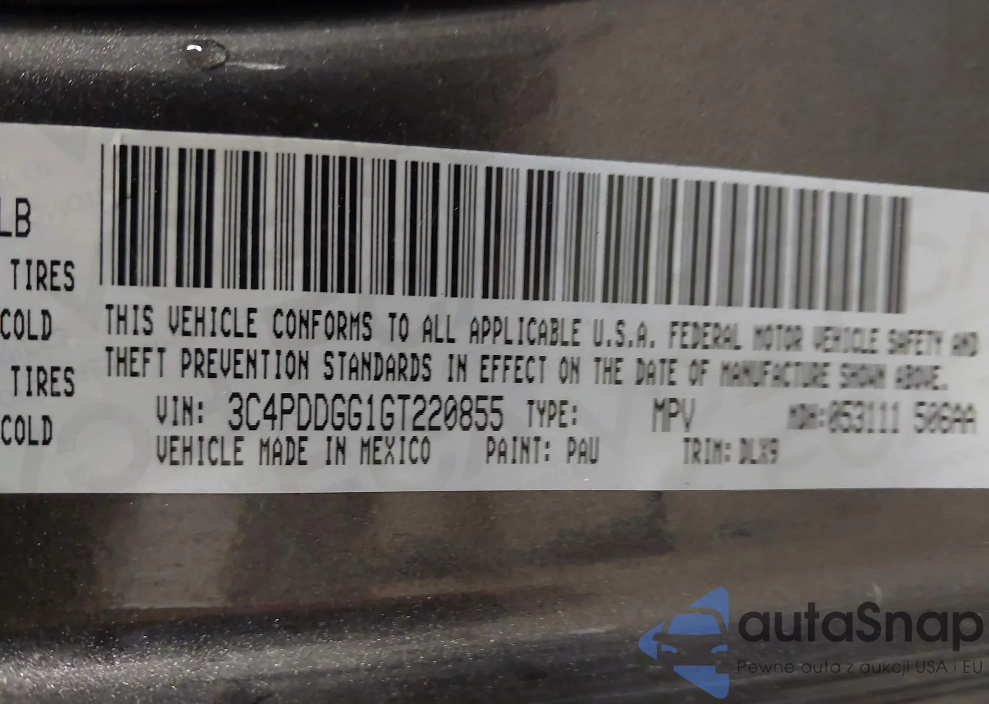 LOT: 43960933 VIN: 3C4PDDGG1GT220855