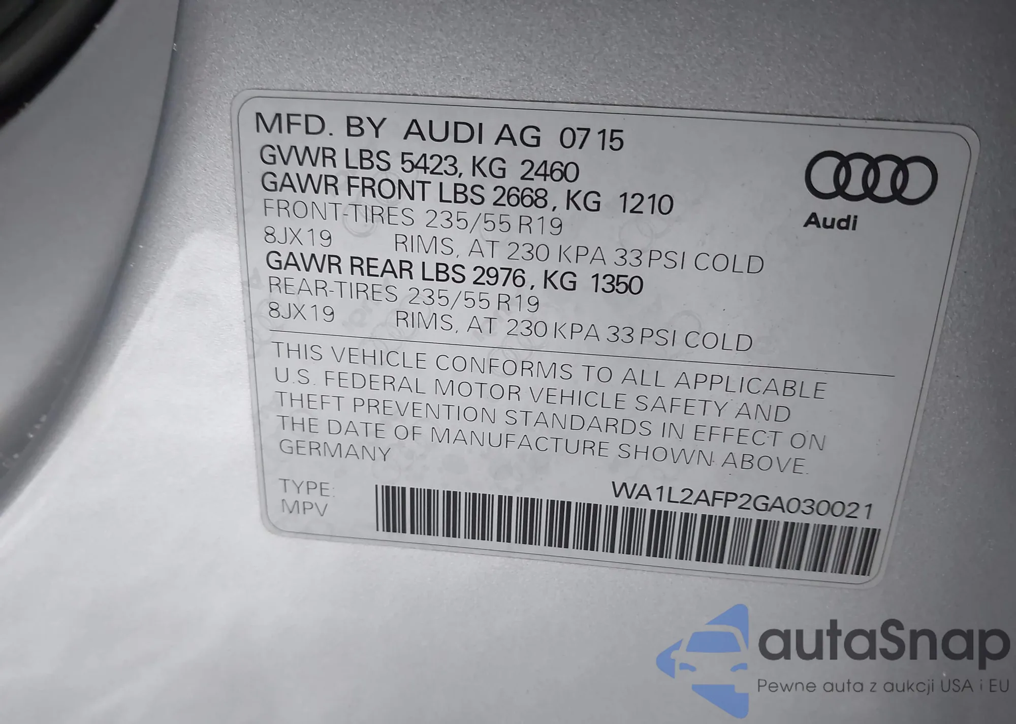 • VIN WA1L2AFP2GA030021