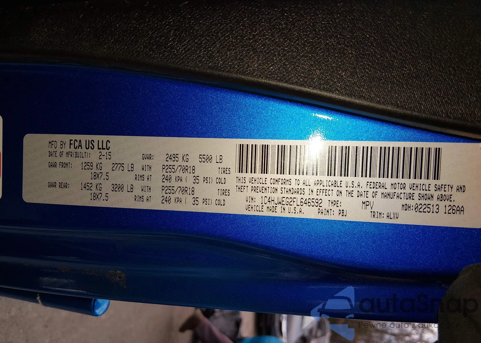 • VIN 1C4HJWEG2FL646592