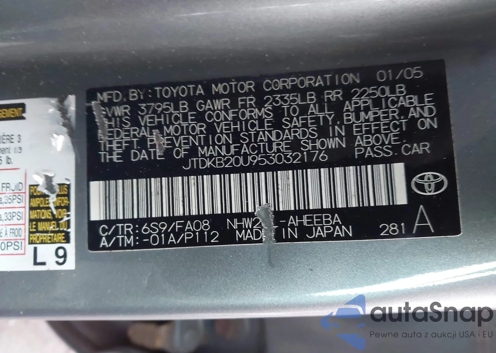 LOT: 44049656 VIN: JTDKB20U953032176