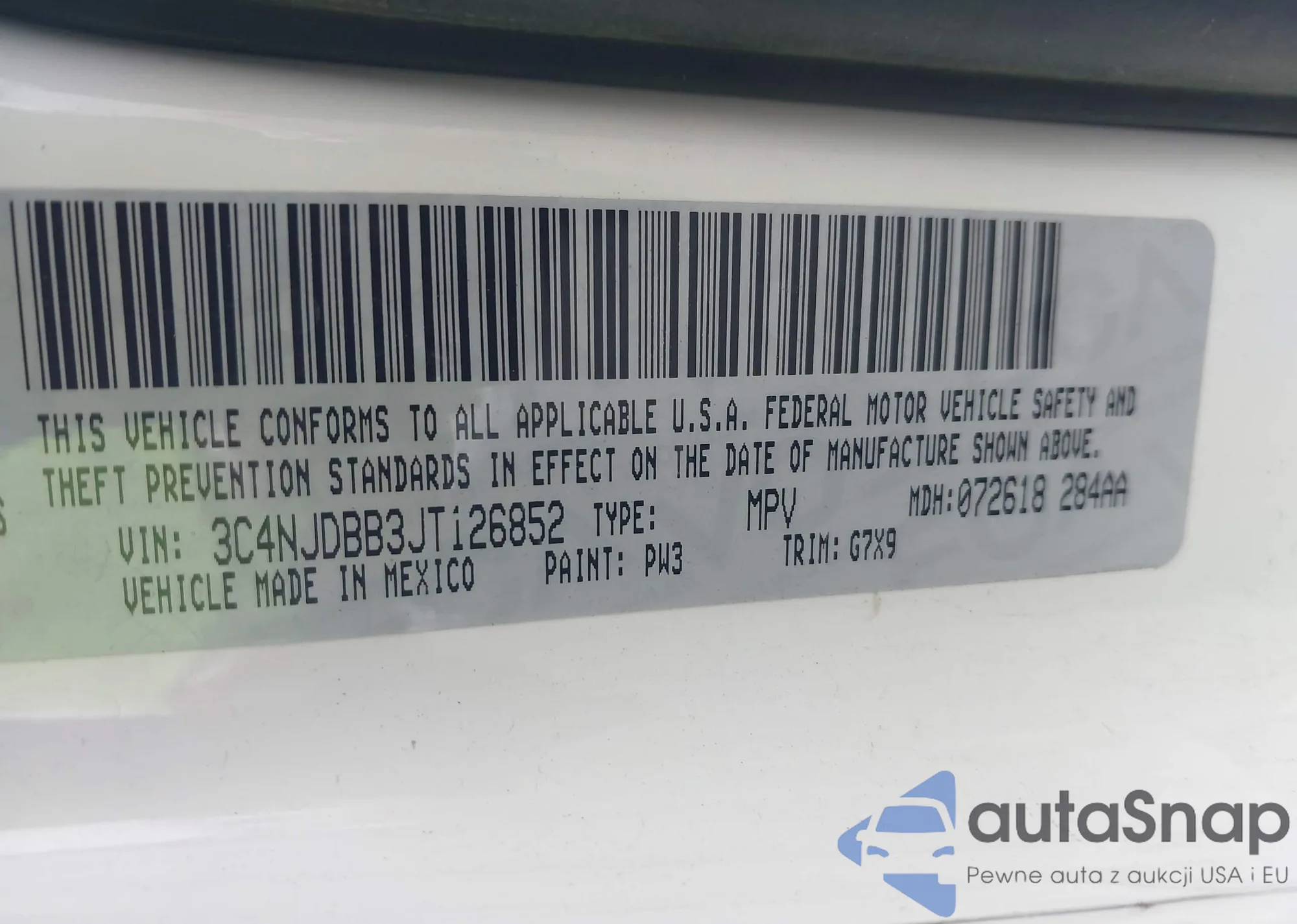 • VIN 3C4NJDBB3JT126852