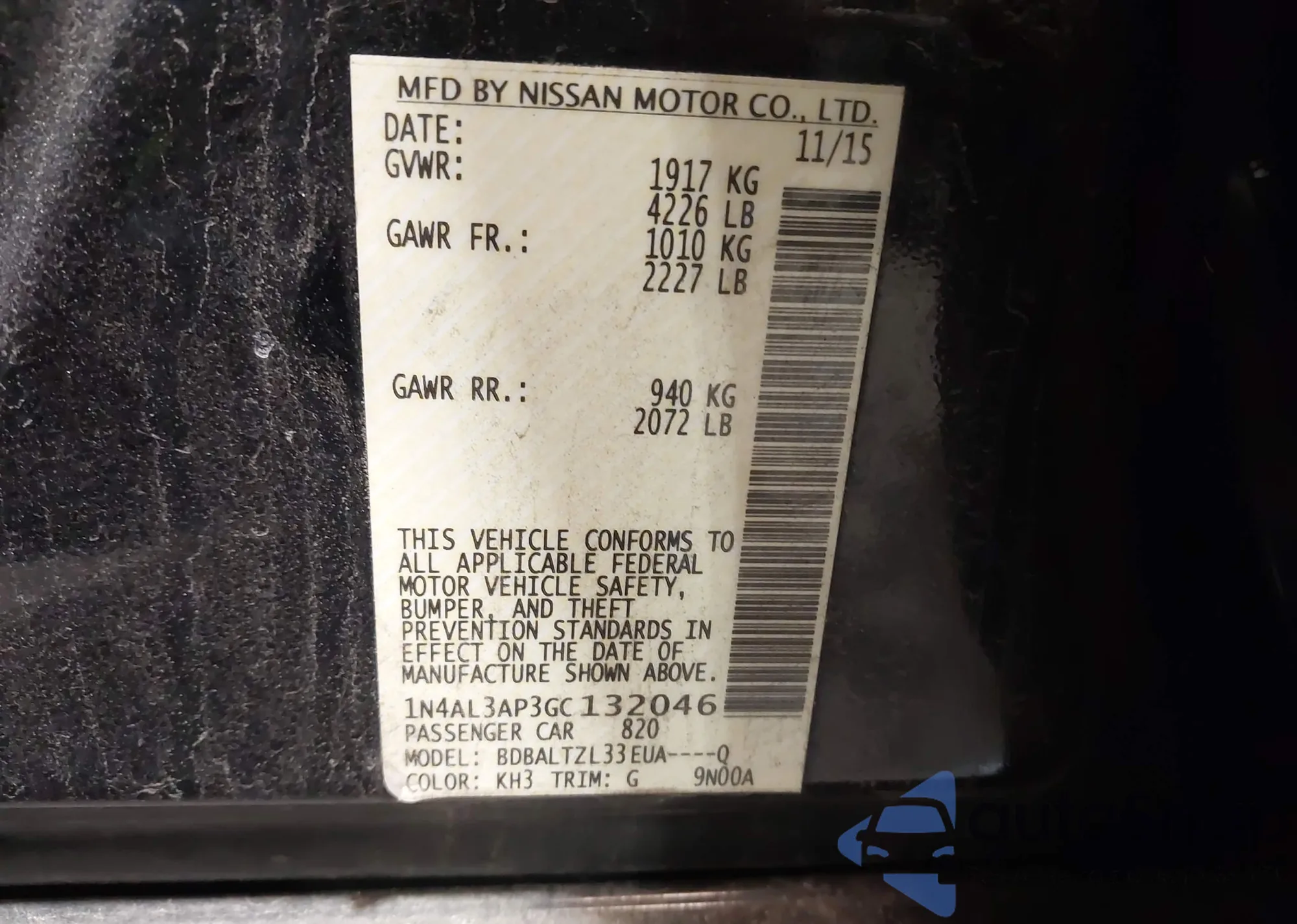 LOT: 43928380 VIN: 1N4AL3AP3GC132046