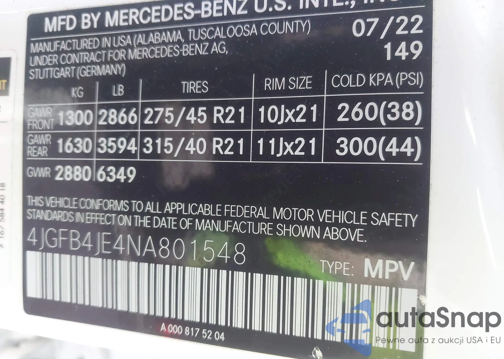 LOT: 43847775 VIN: WA11AAGU2S2020316