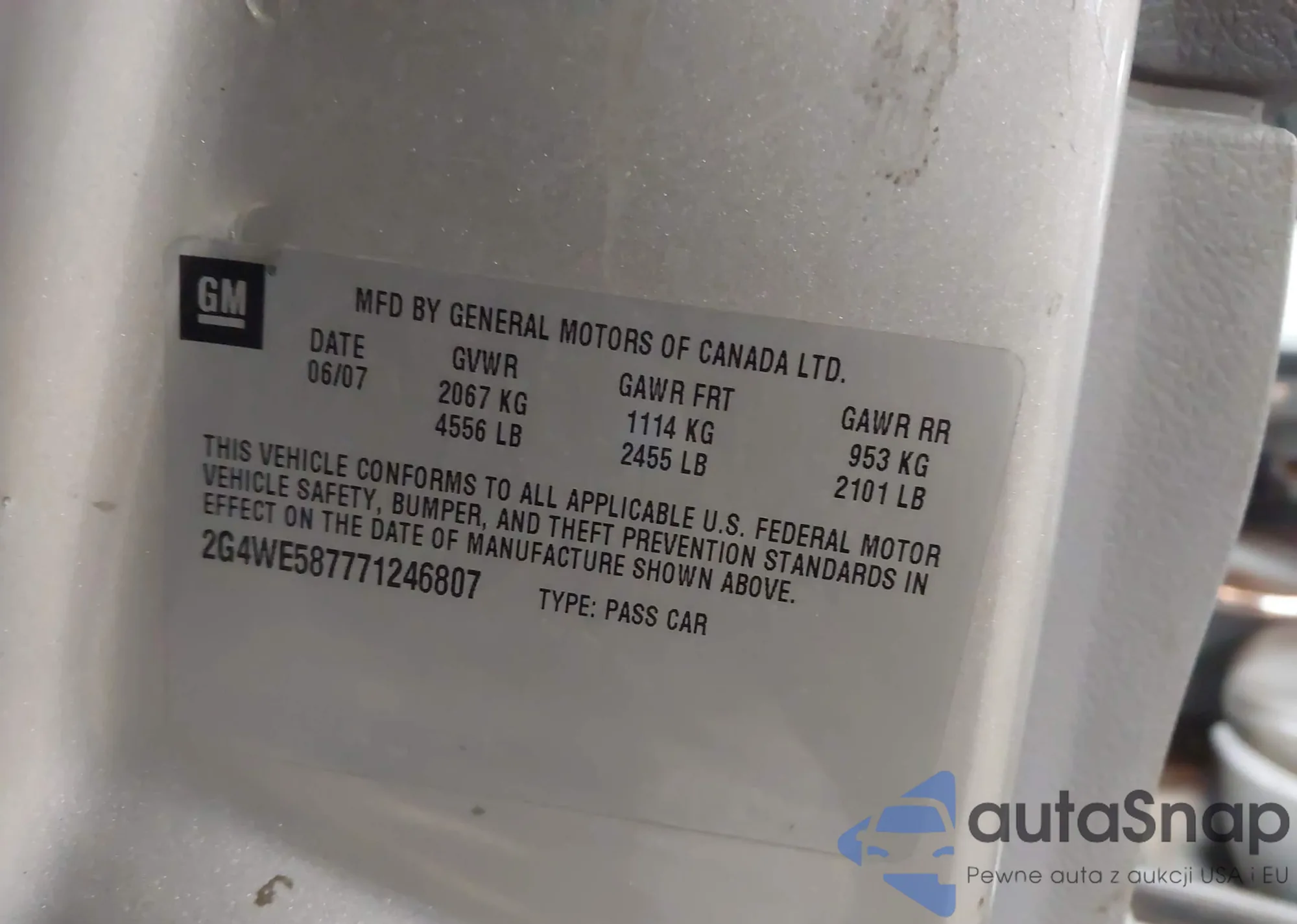 • VIN 2G4WE587771246807