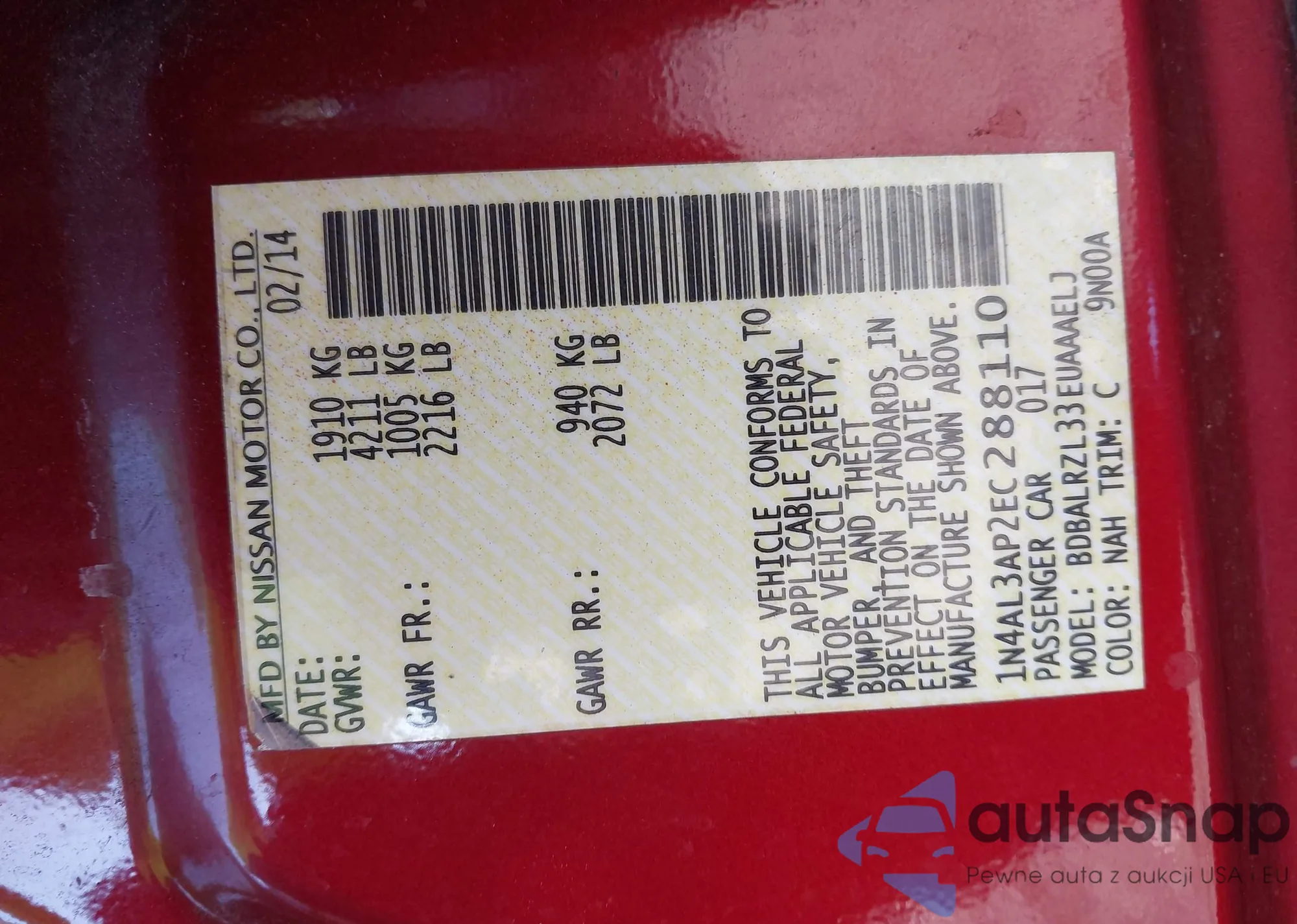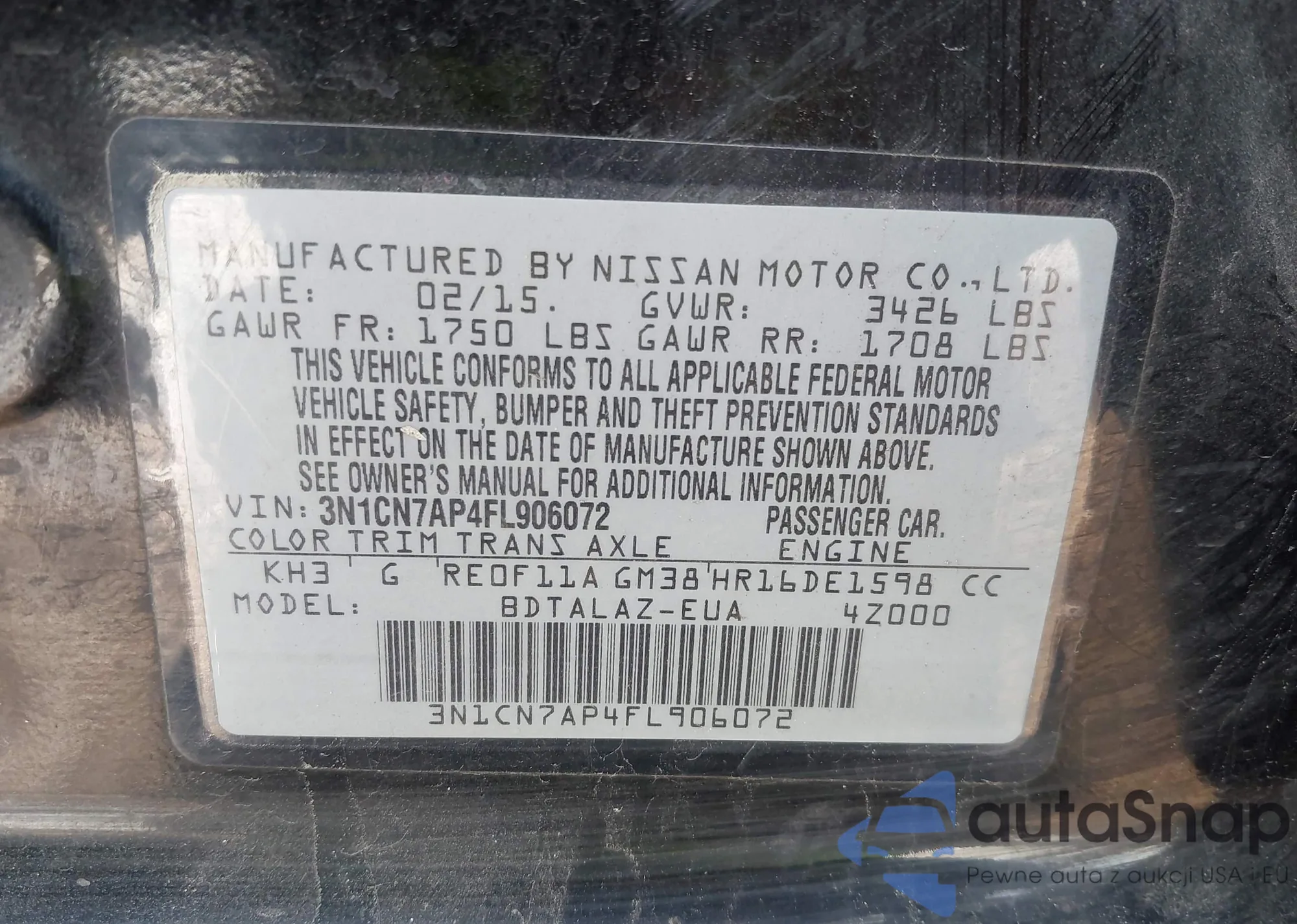 • VIN 3N1CN7AP4FL906072