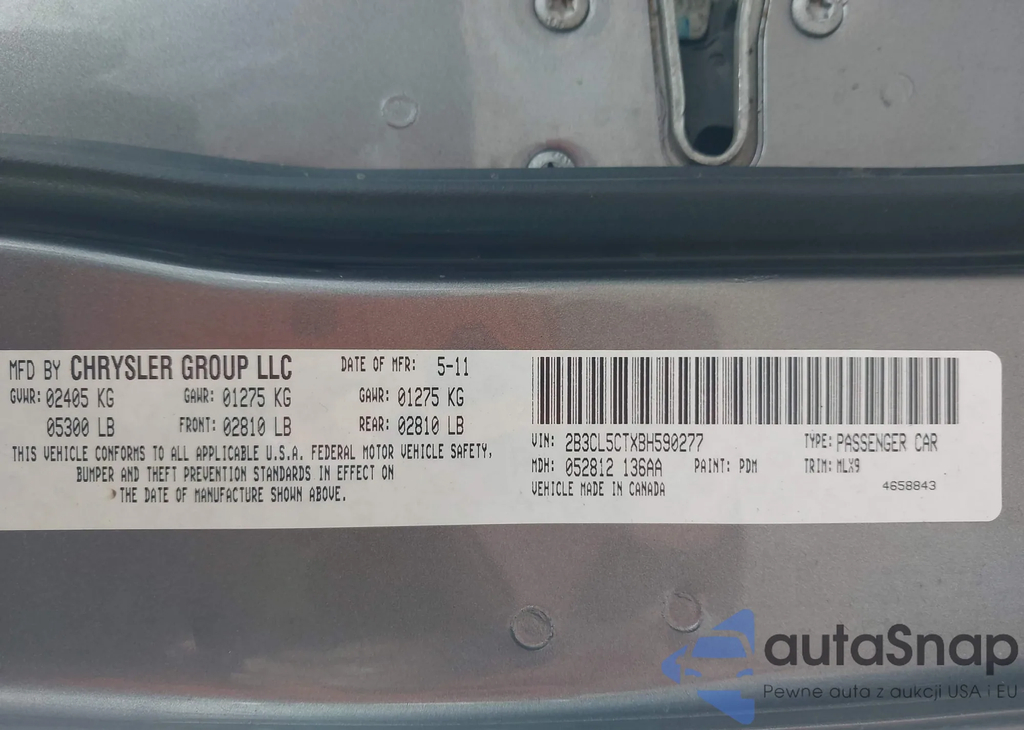 LOT: 43804257 VIN: 2B3CL5CTXBH590277