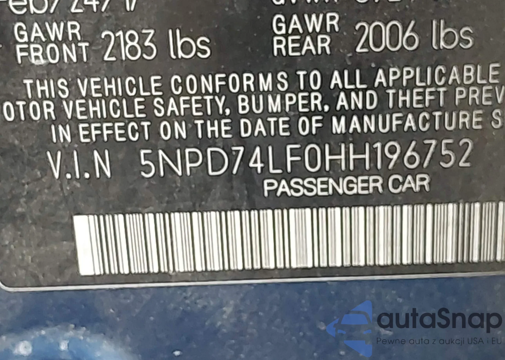 LOT: 43717168 VIN: 5NPEU4AF3AH598545