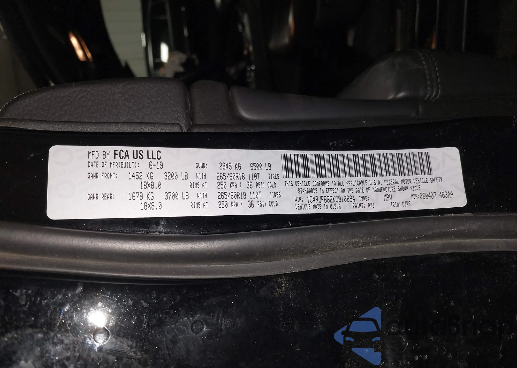 • VIN 1C4RJFBG2KC810894