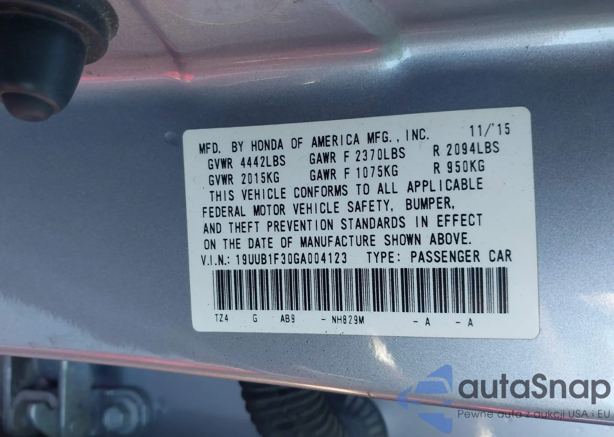 LOT: 43803950 VIN: 19UUB1F30GA004123