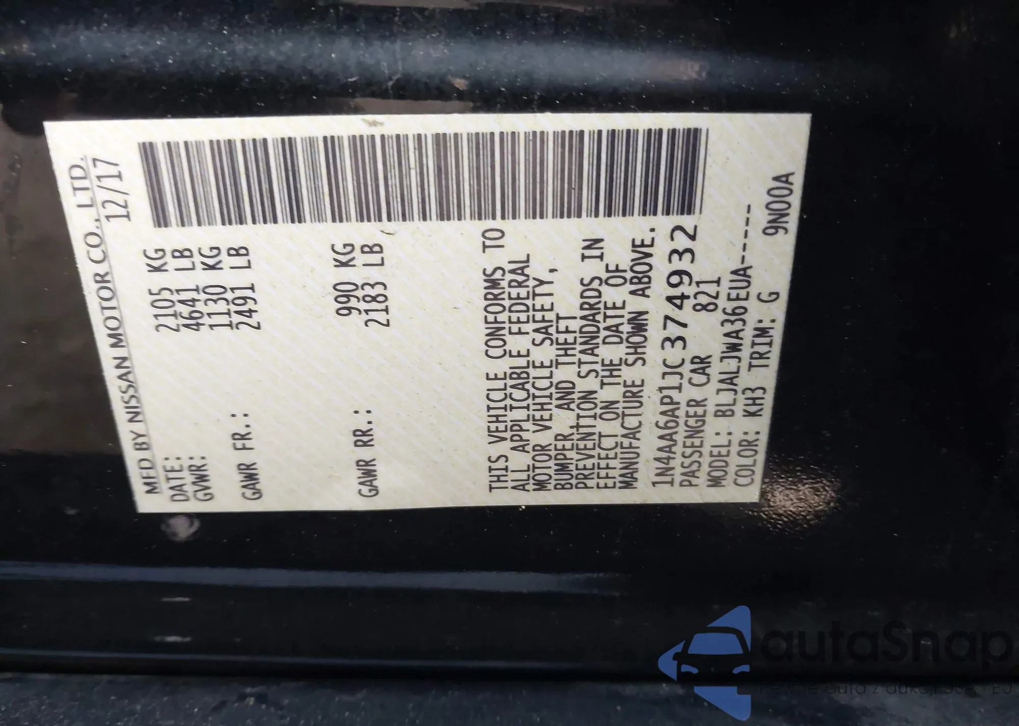 • VIN 1N4AA6AP1JC374932