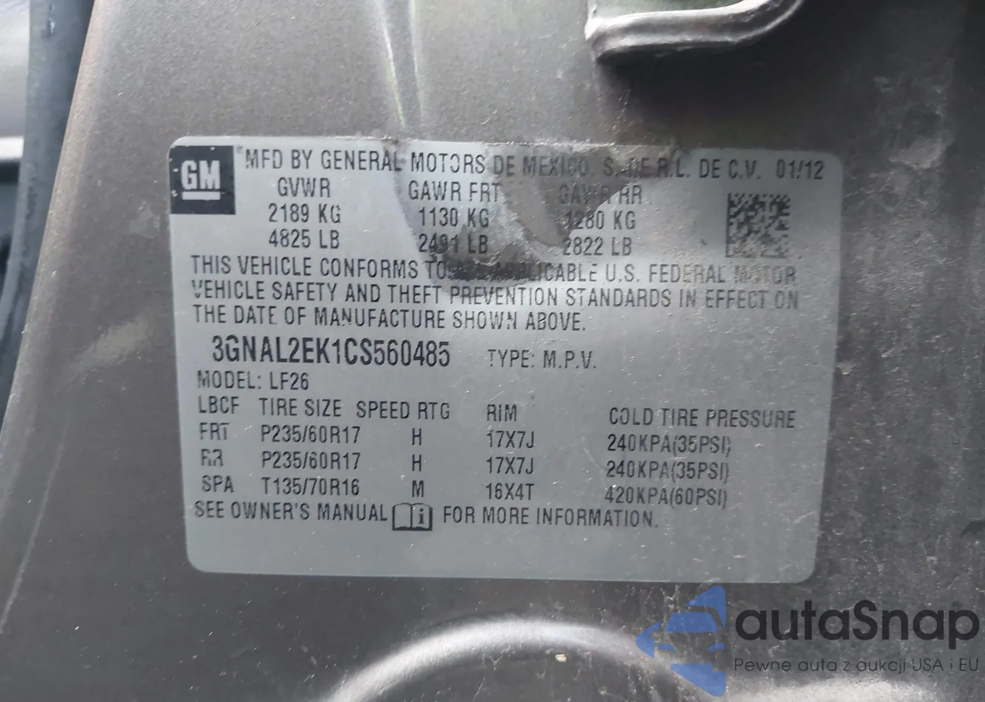 • VIN 1G1PC5SH7C7395045