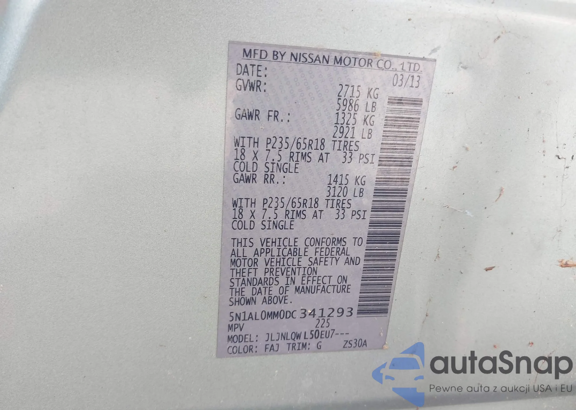 • VIN 5N1AL0MM0DC341293