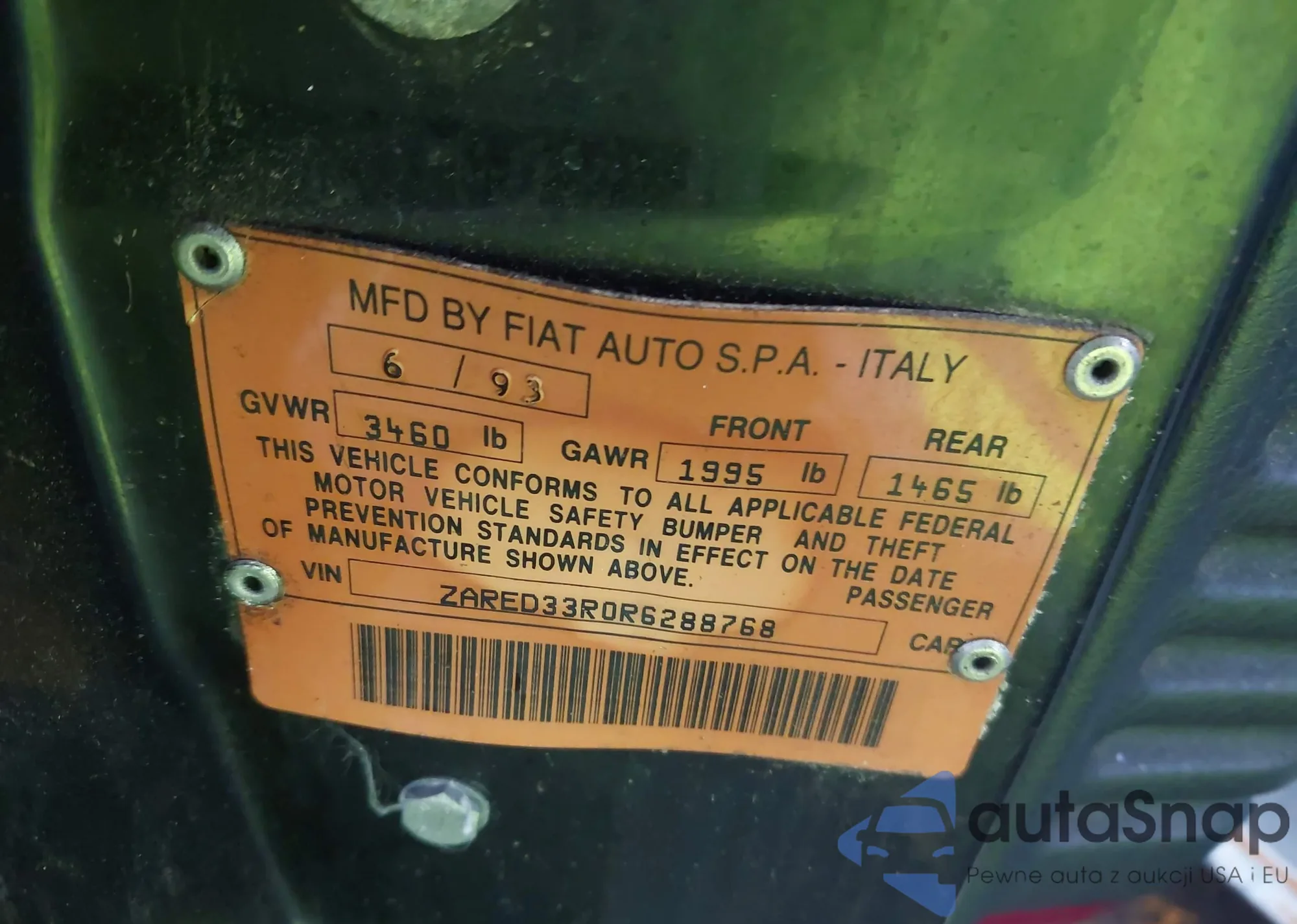 LOT: 43749708 VIN: ZARED33R0R6288768