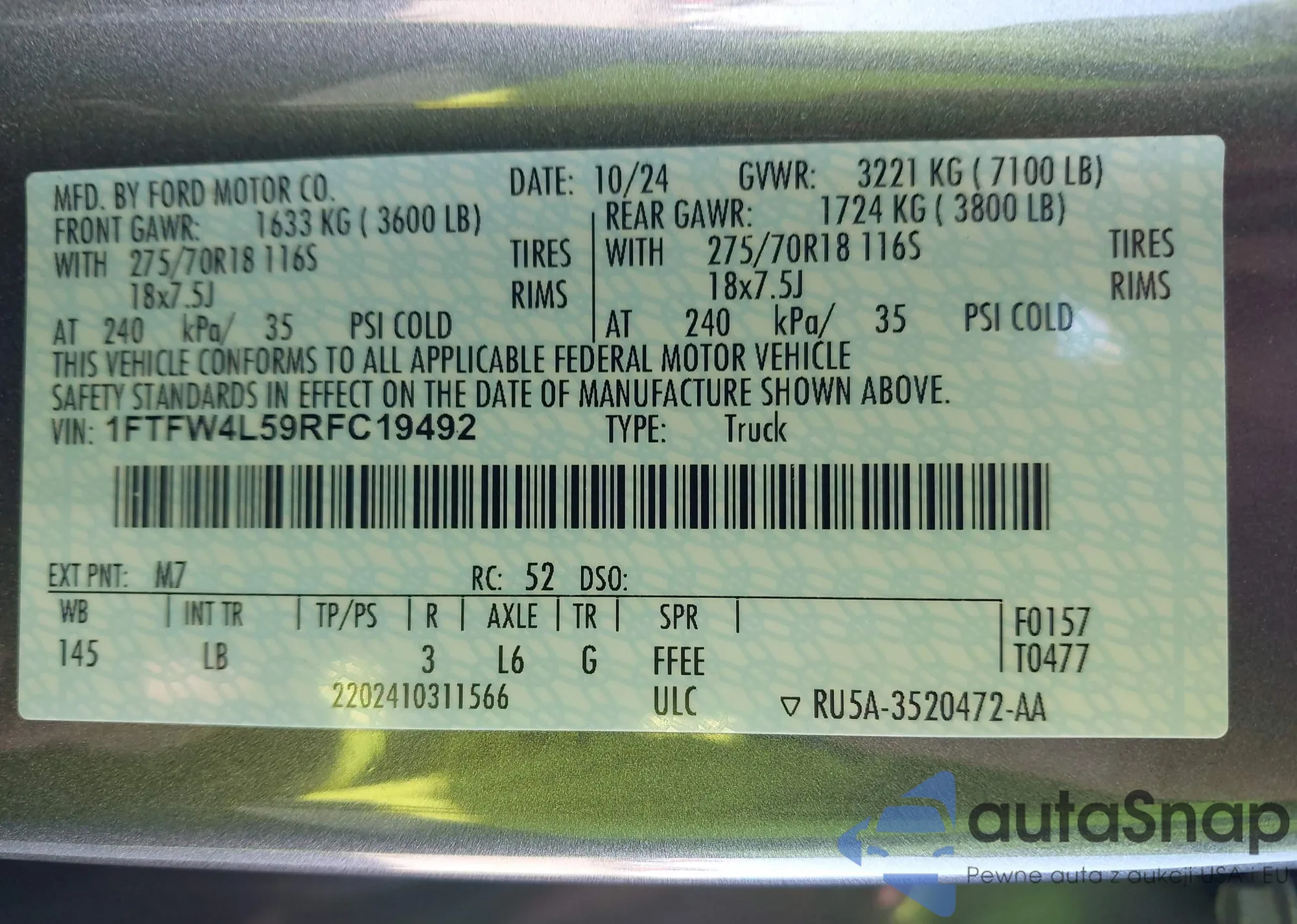 • VIN 1FT7W2BT2CEA87147