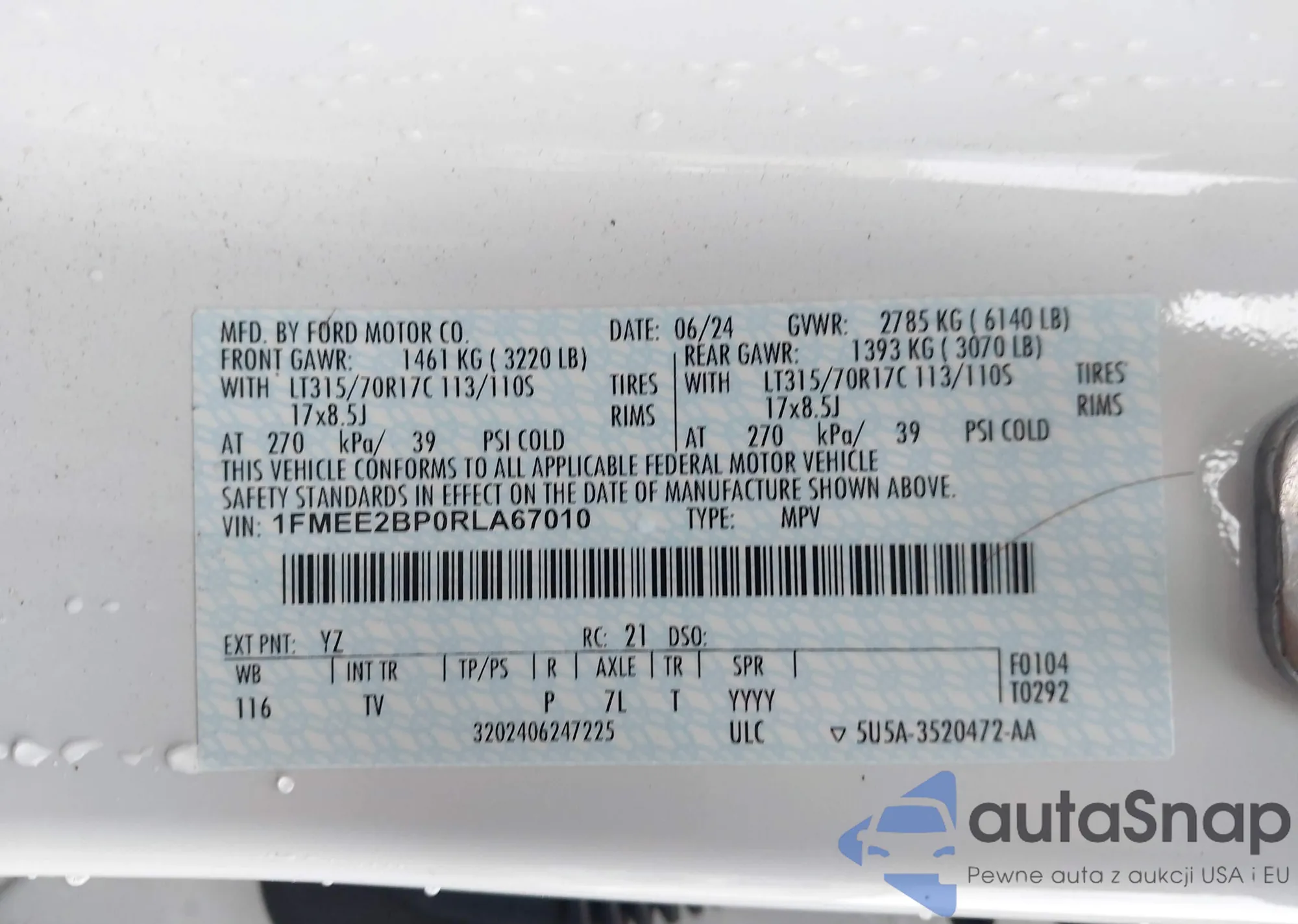 • VIN 1FMEE2BP0RLA67010