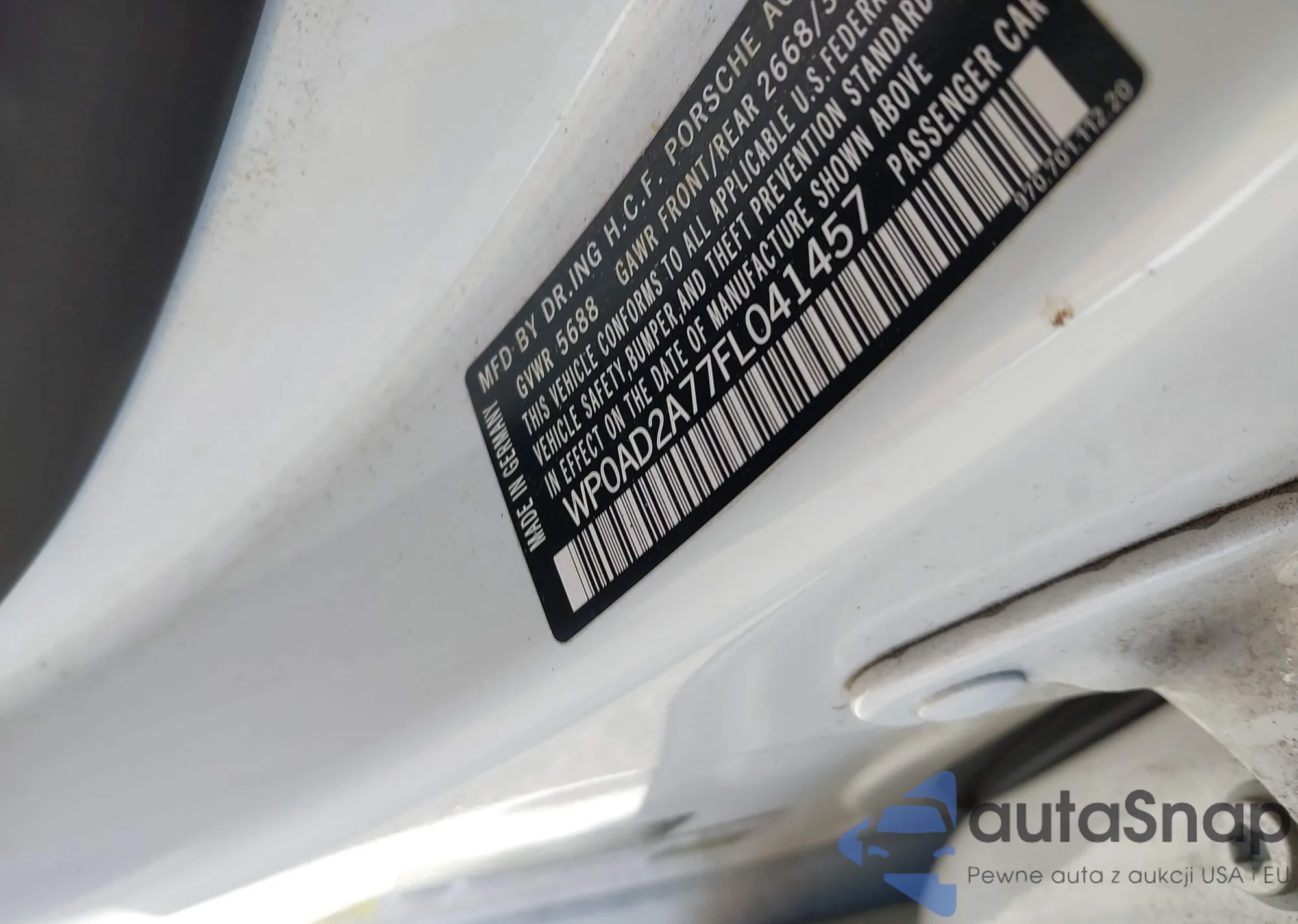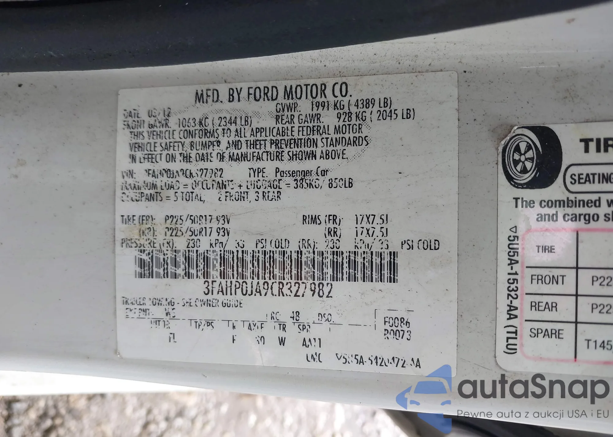 • VIN 3FAHP0JA9CR327982