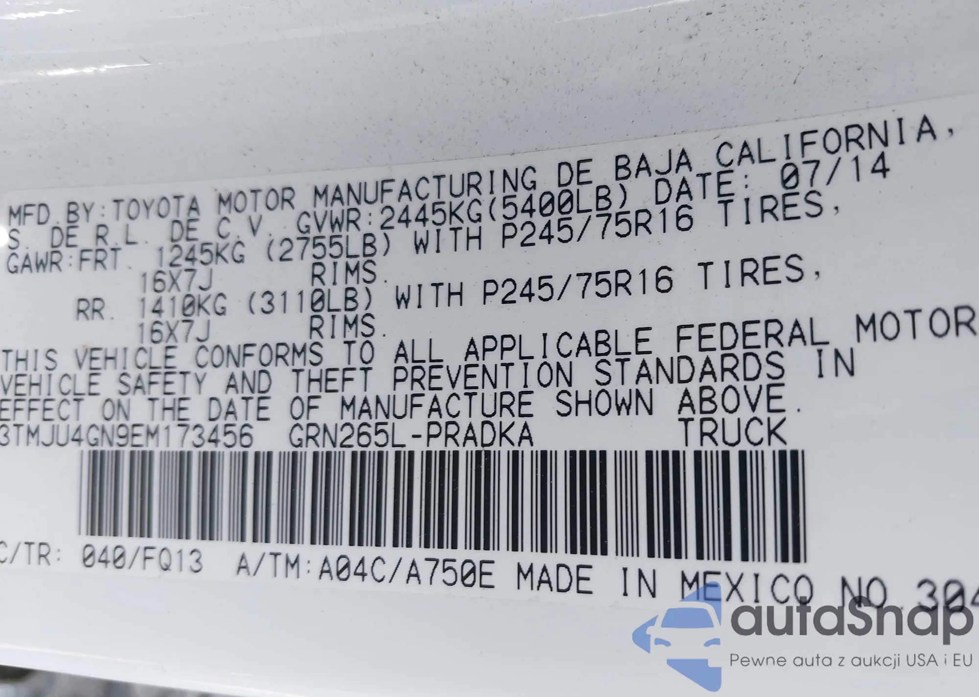 • VIN 3TMJU4GN9EM173456
