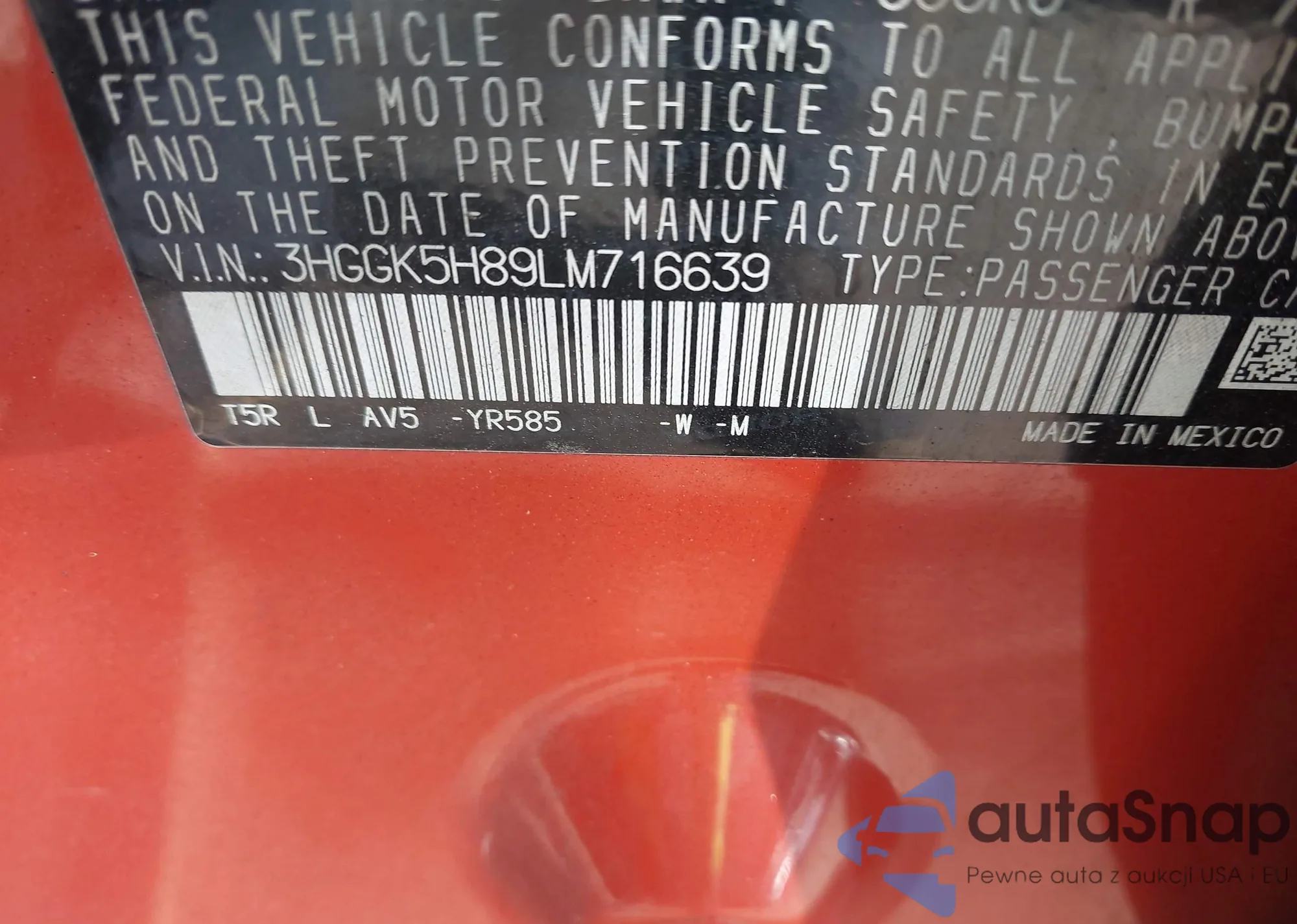 • VIN 3HGGK5H89LM716639