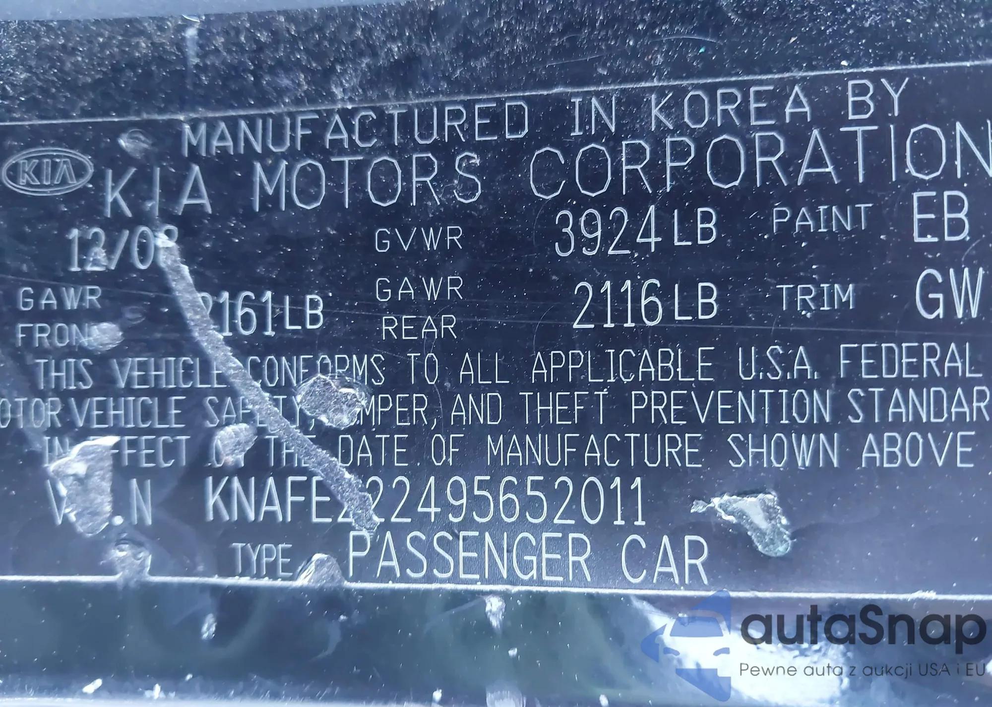 LOT: 43494165 VIN: 3KPFK4A79HE087424