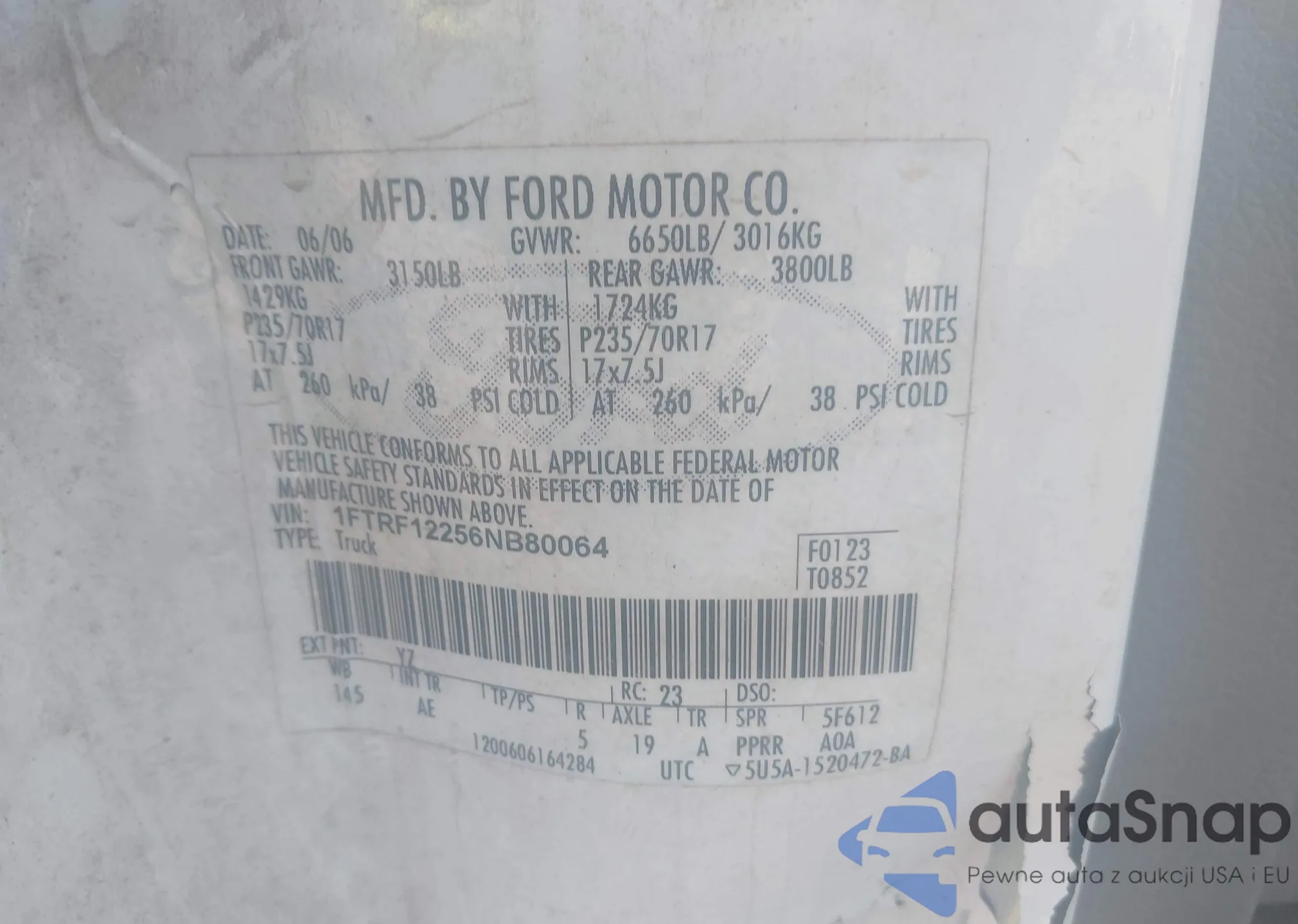 LOT: 43523115 VIN: 1FTRF12256NB80064