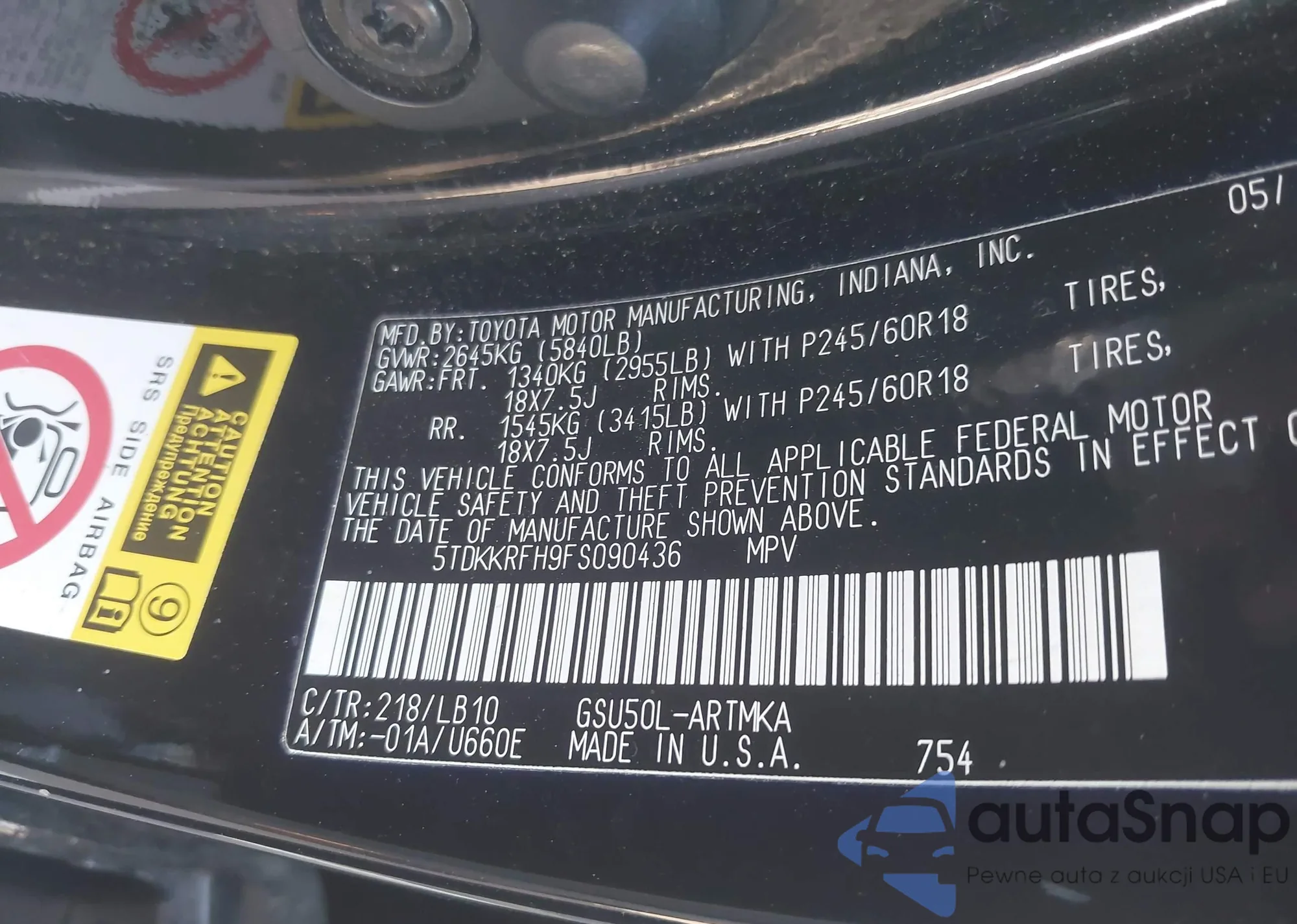 LOT: 43538876 VIN: 5TDKKRFH9FS090436