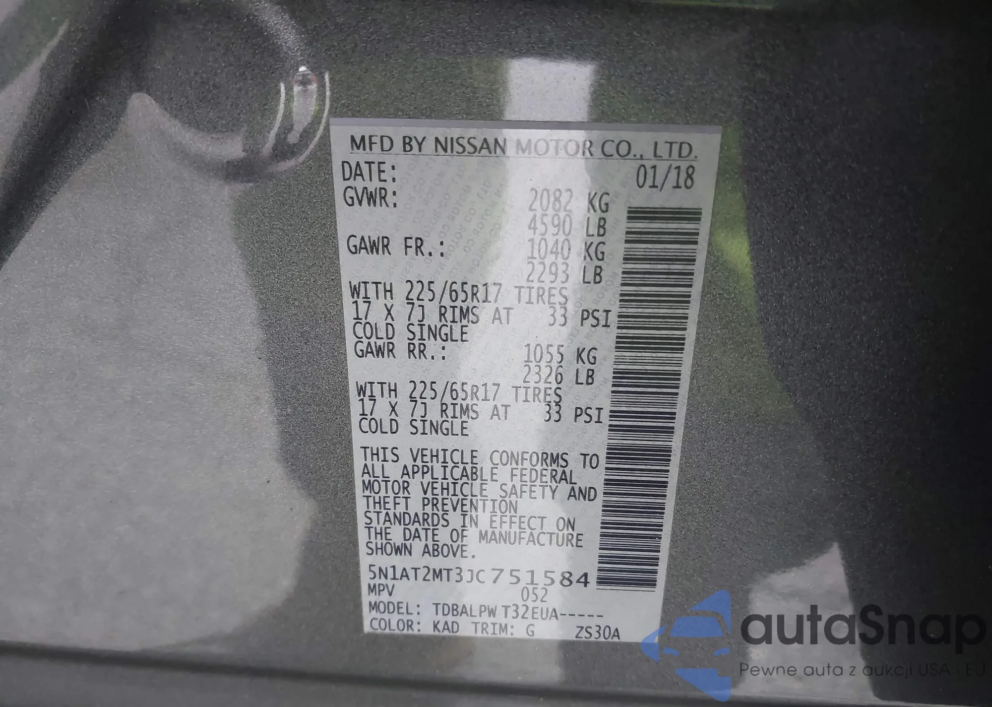 LOT: 43734051 VIN: 5N1AT2MT3JC751584