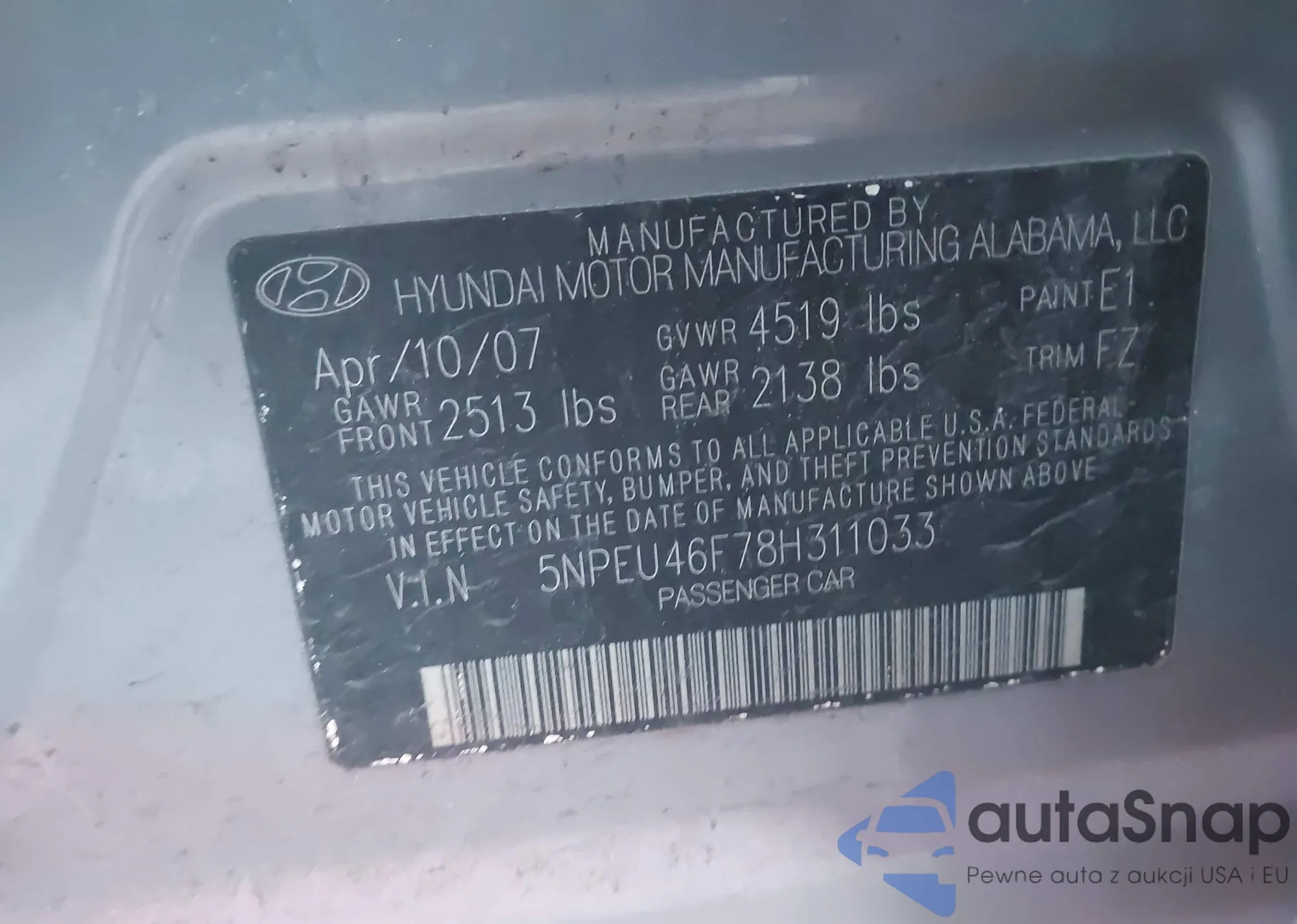 • VIN 5NPEU46F78H311033