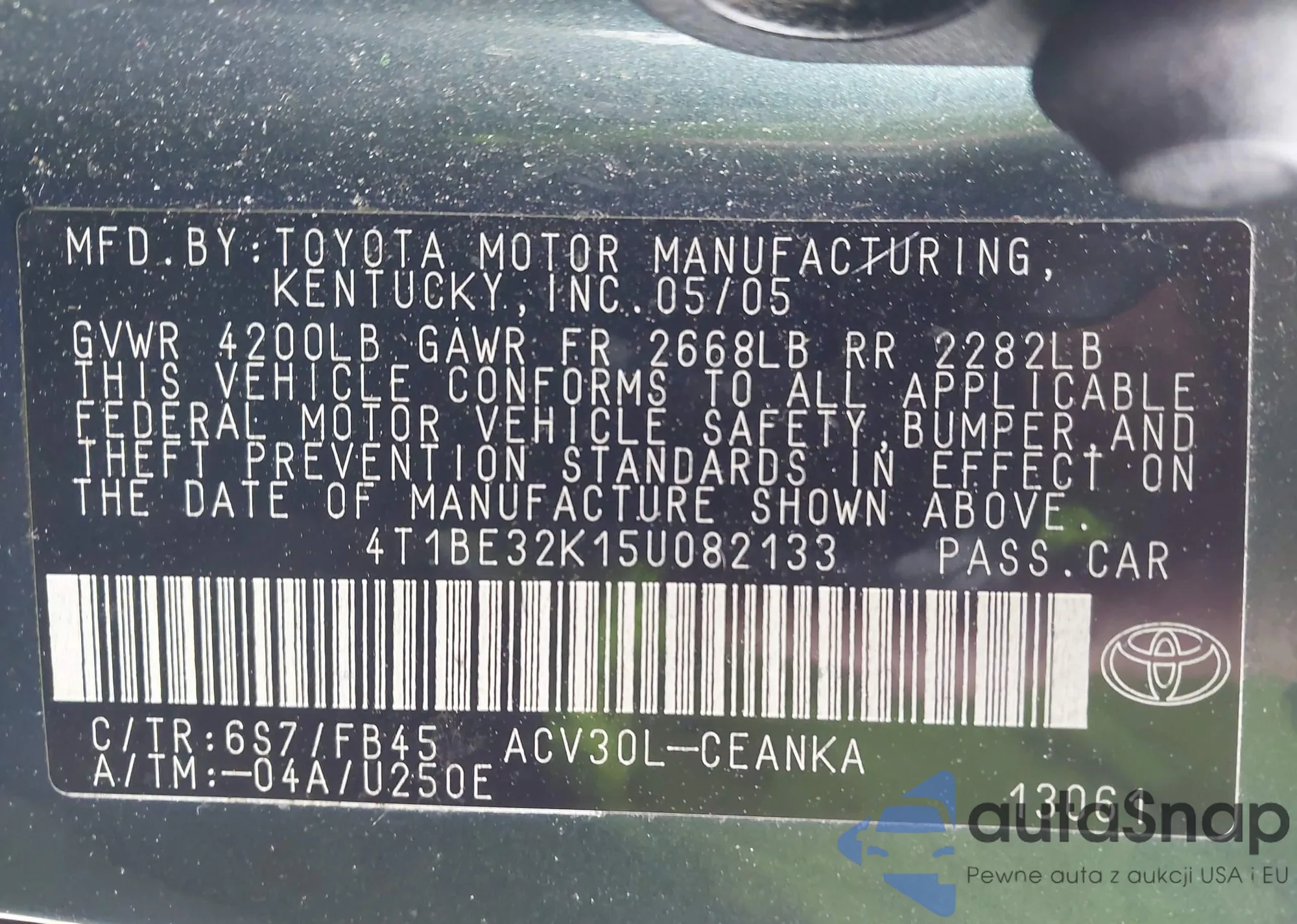 • VIN 4T1BE32K15U082133