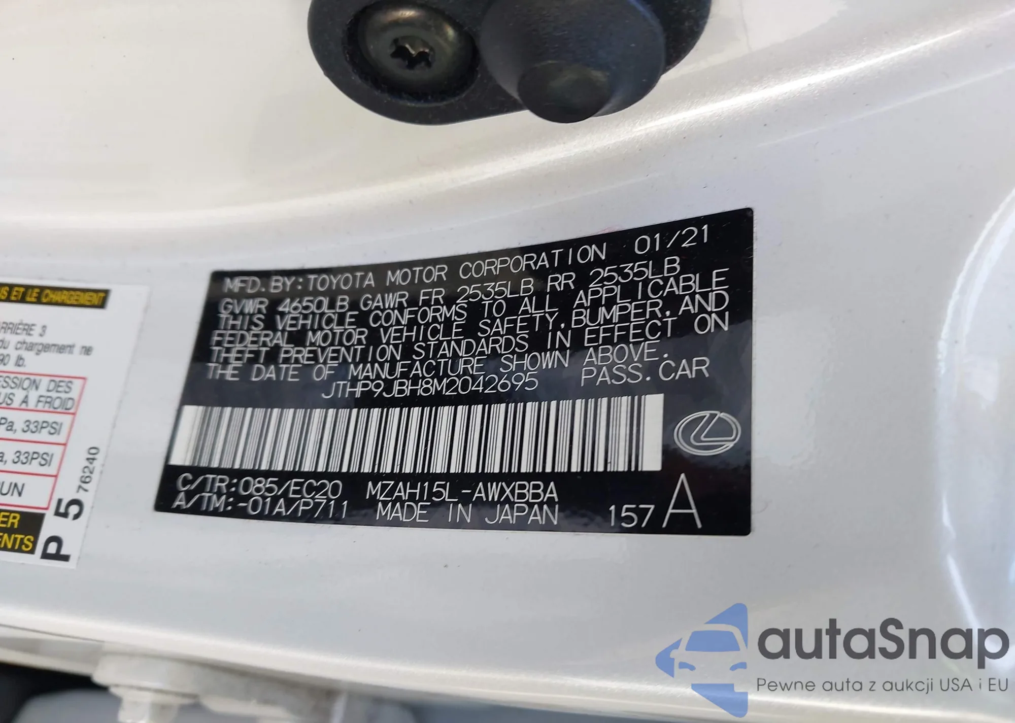 • VIN JTHP9JBH8M2042695