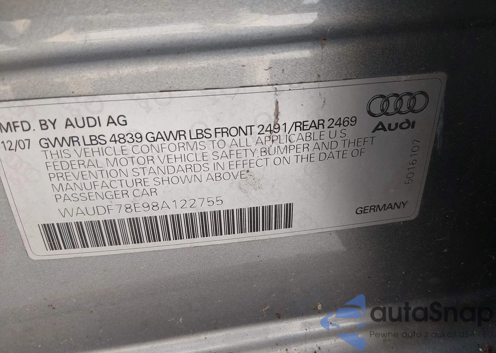 LOT: 43867252 VIN: WA1KK78R89A028774