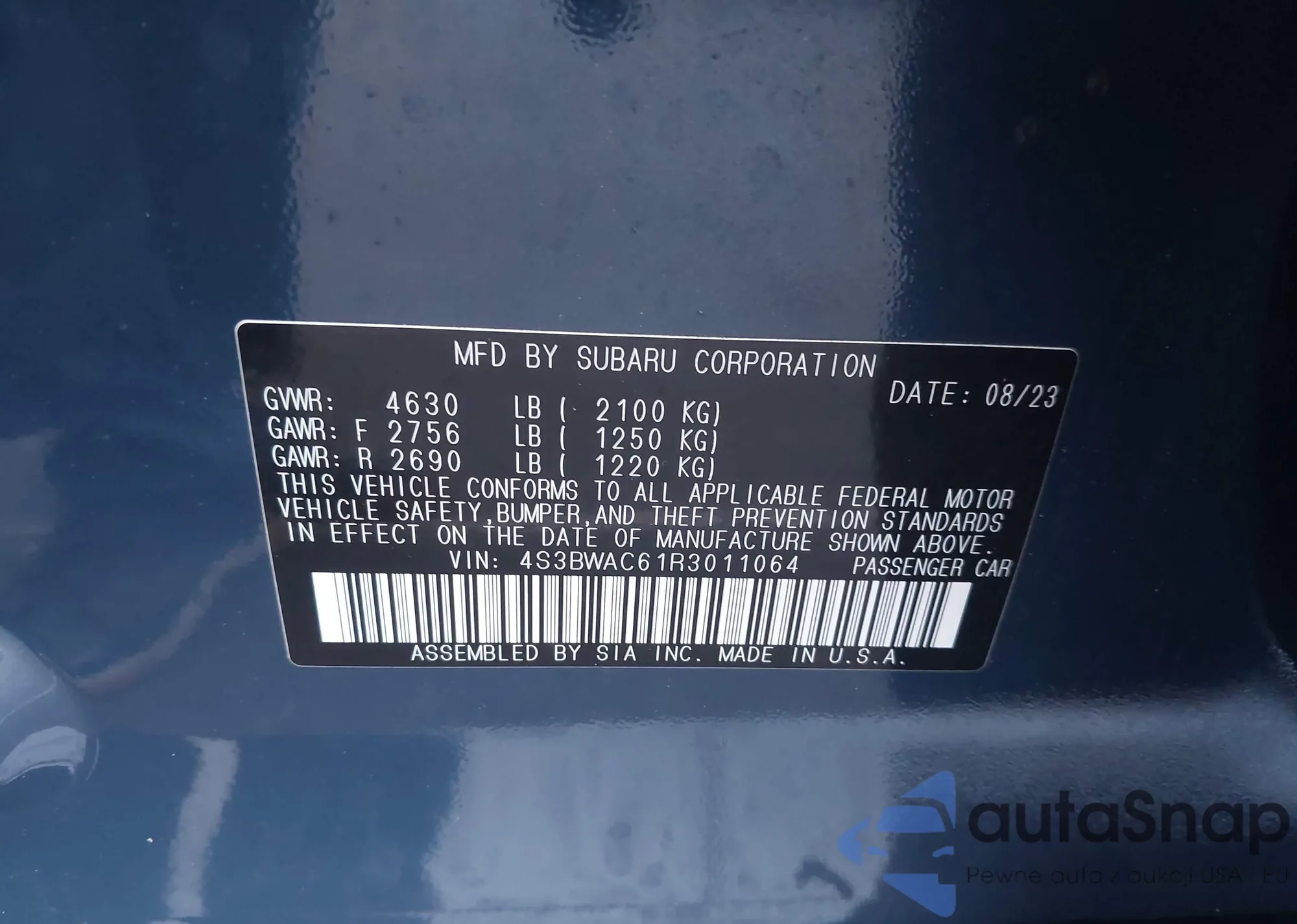 • VIN 4S3BWAC61R3011064