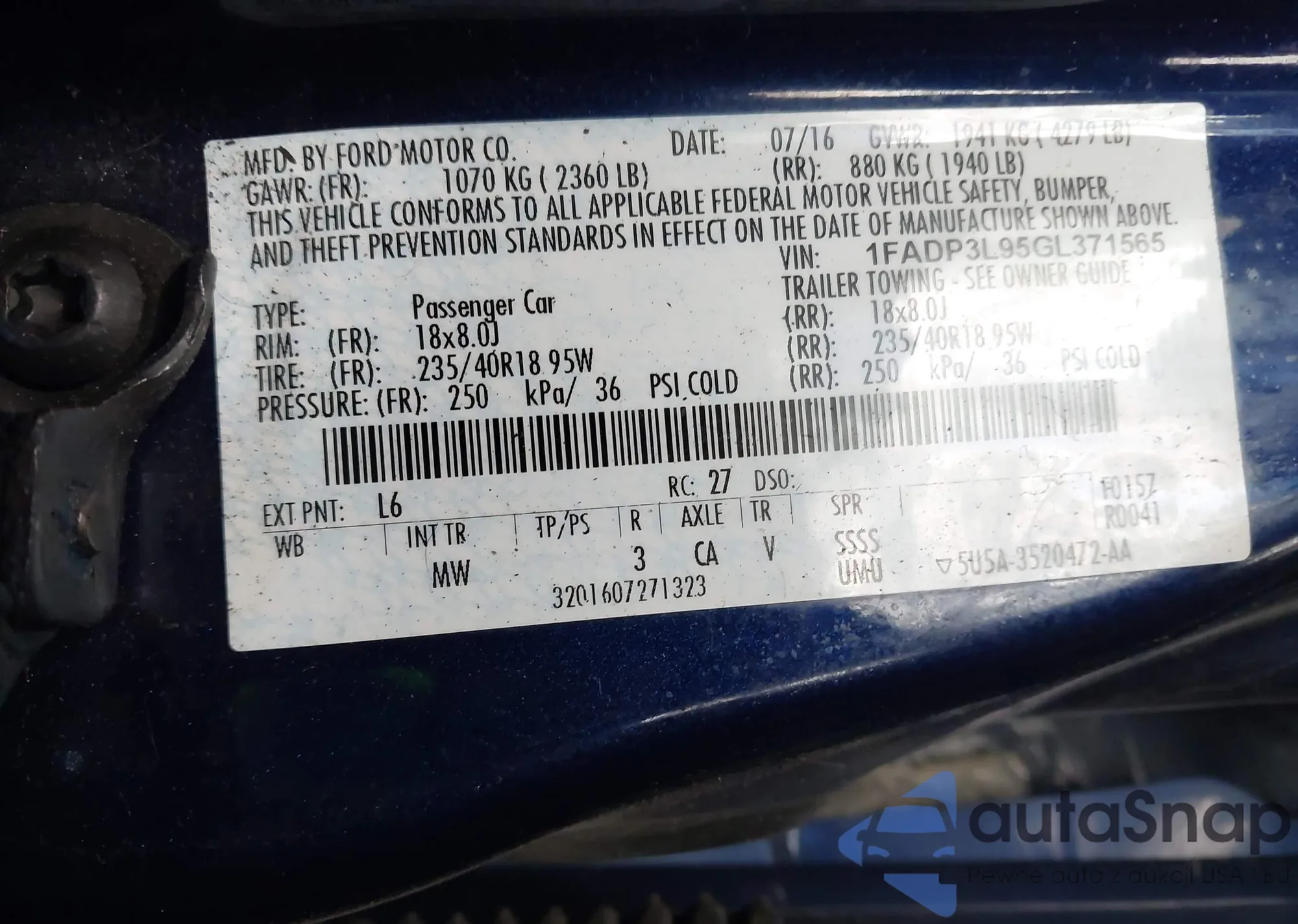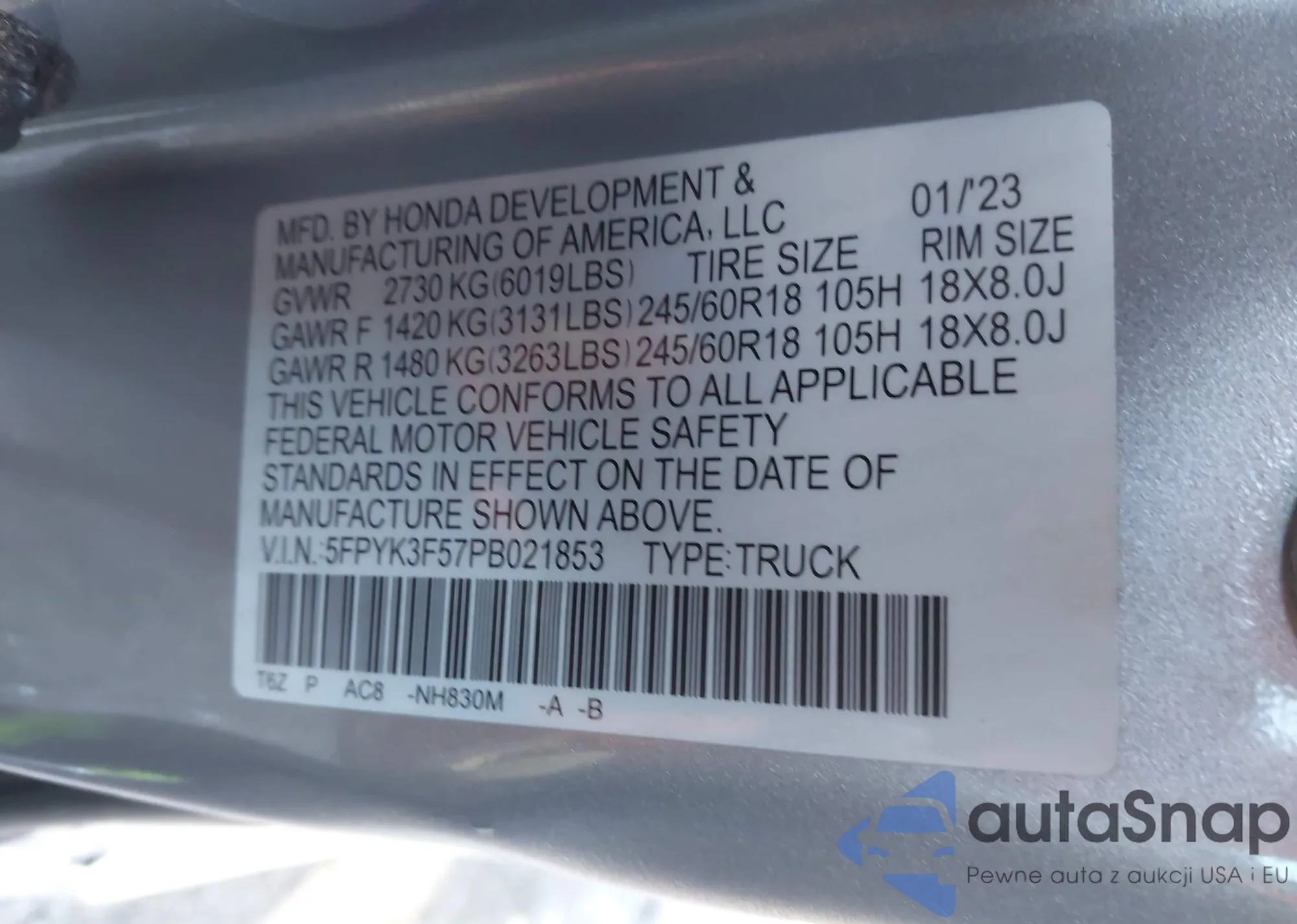 • VIN 5FPYK3F57PB021853