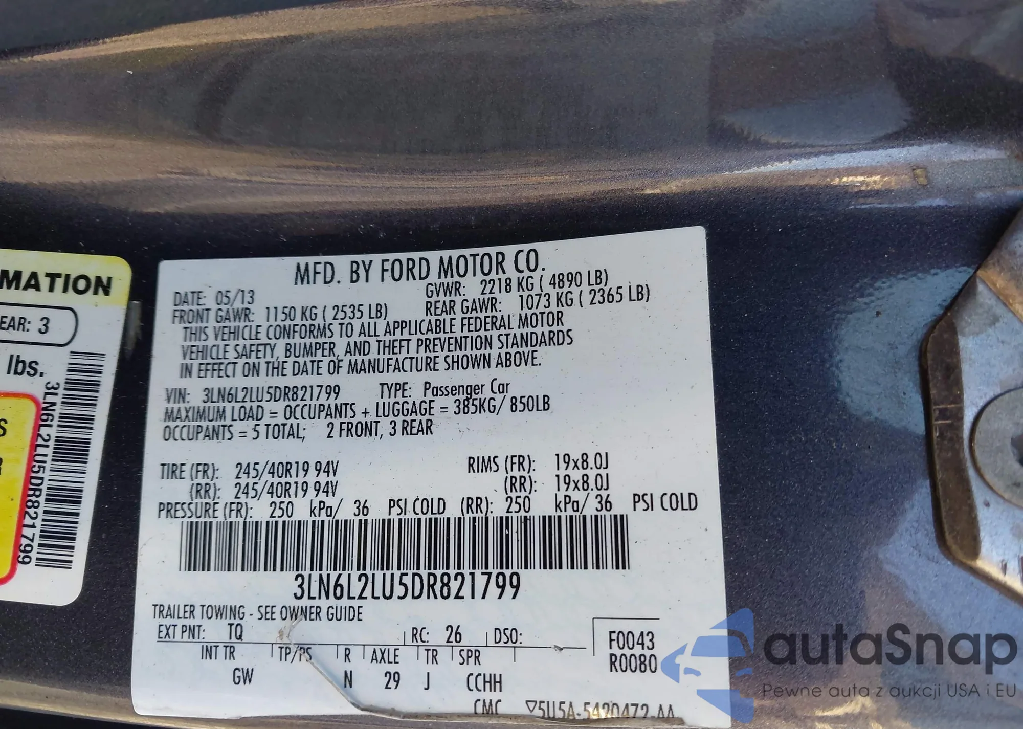 LOT: 43905743 VIN: 3LN6L2LU5DR821799