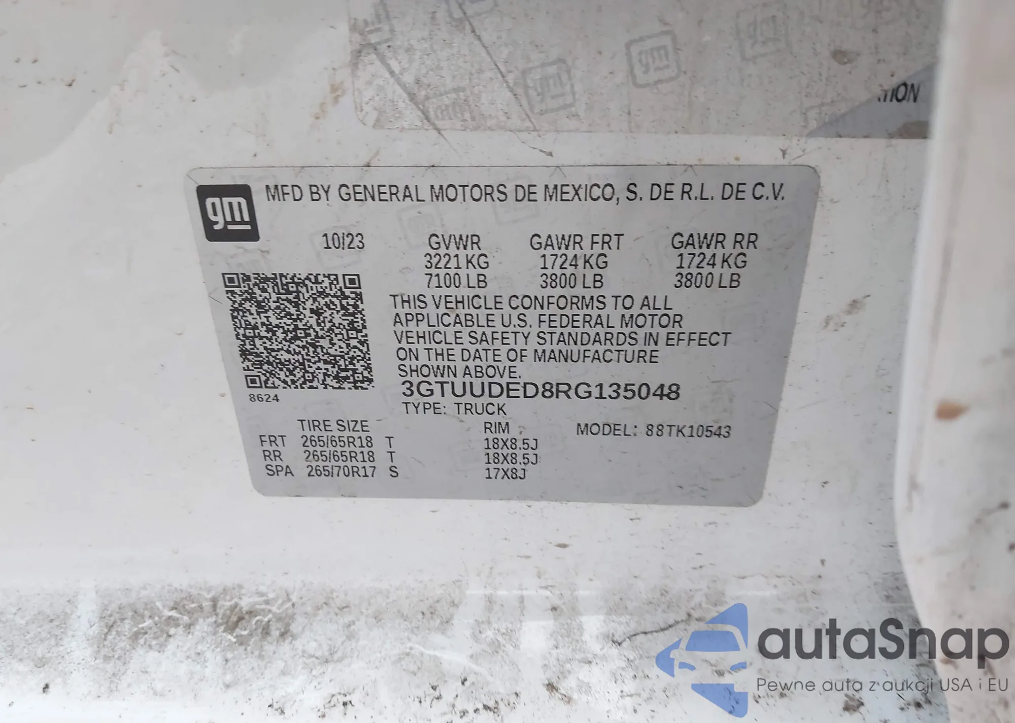 • VIN 3GTUUDED8RG135048