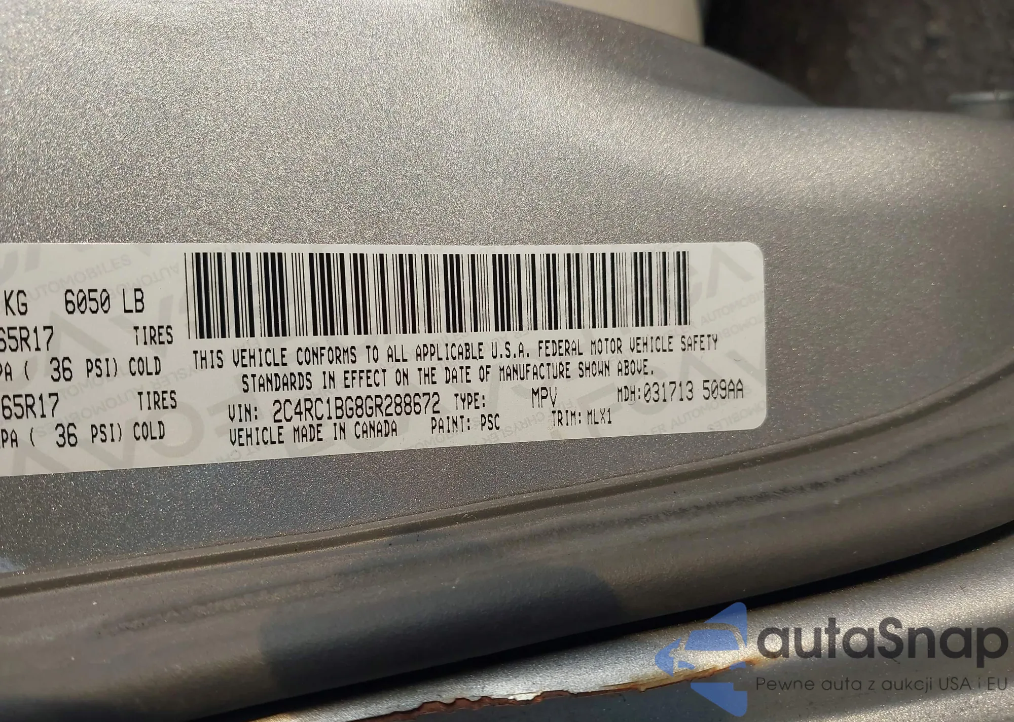 • VIN 2C4RC1BG8GR288672
