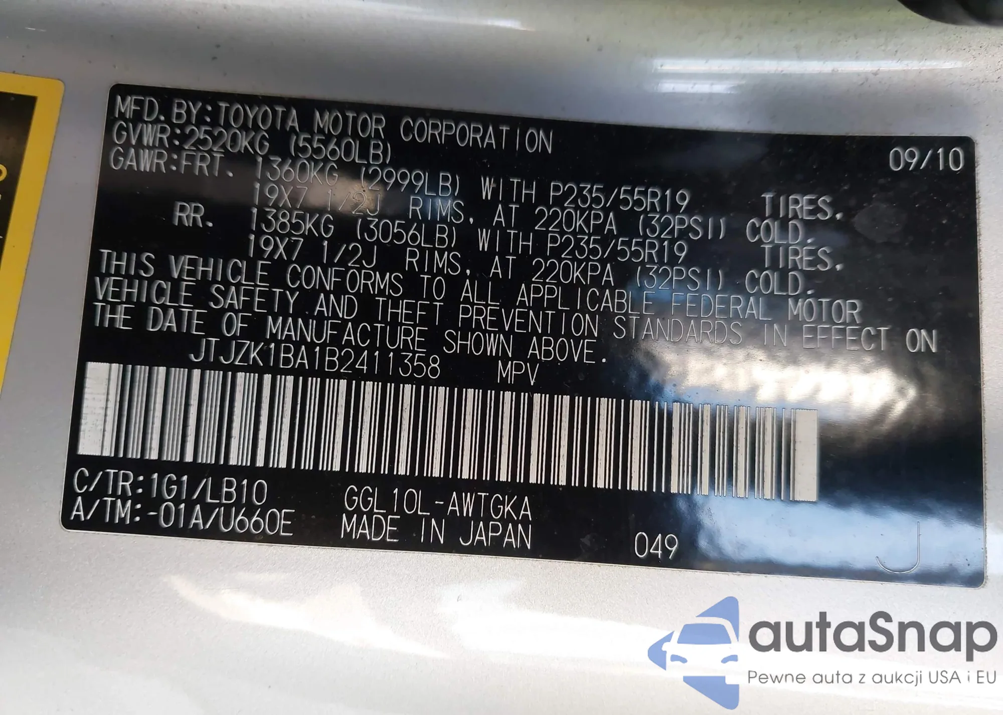 • VIN JTJZK1BA1B2411358