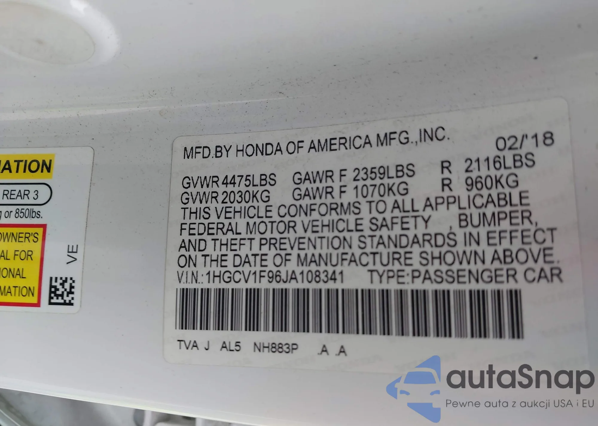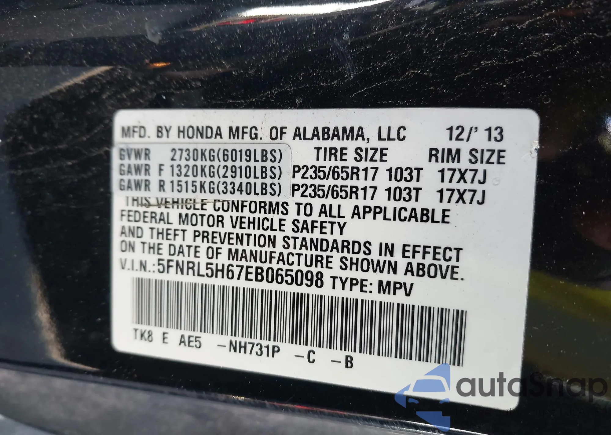 • VIN 5FNRL5H67EB065098