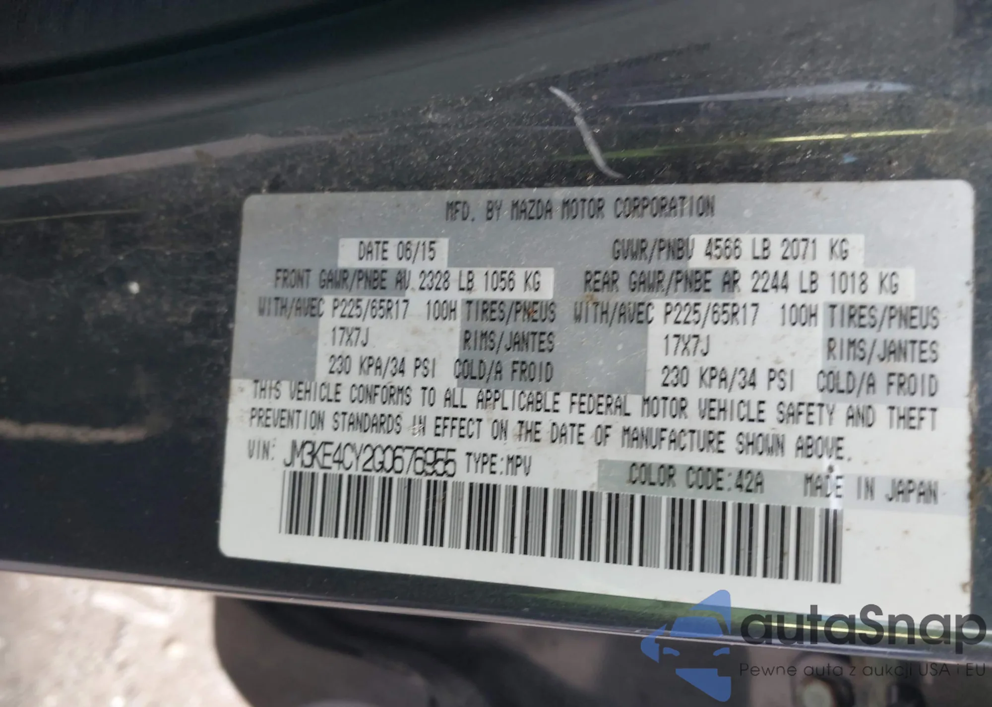 LOT: 43873474 VIN: JM3KE4CY2G0676955