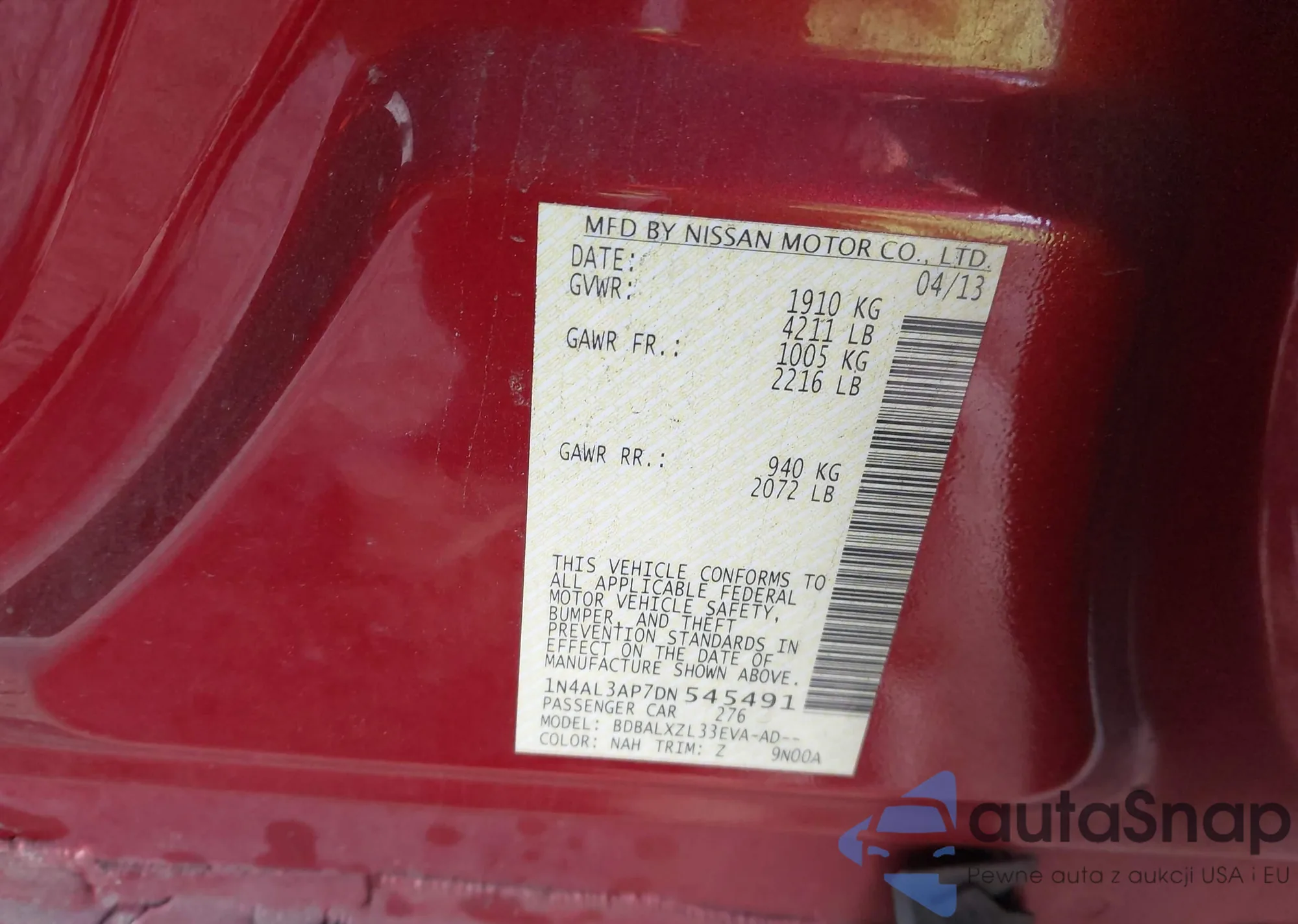 LOT: 43852690 VIN: 5UXZV4C53D0B05226