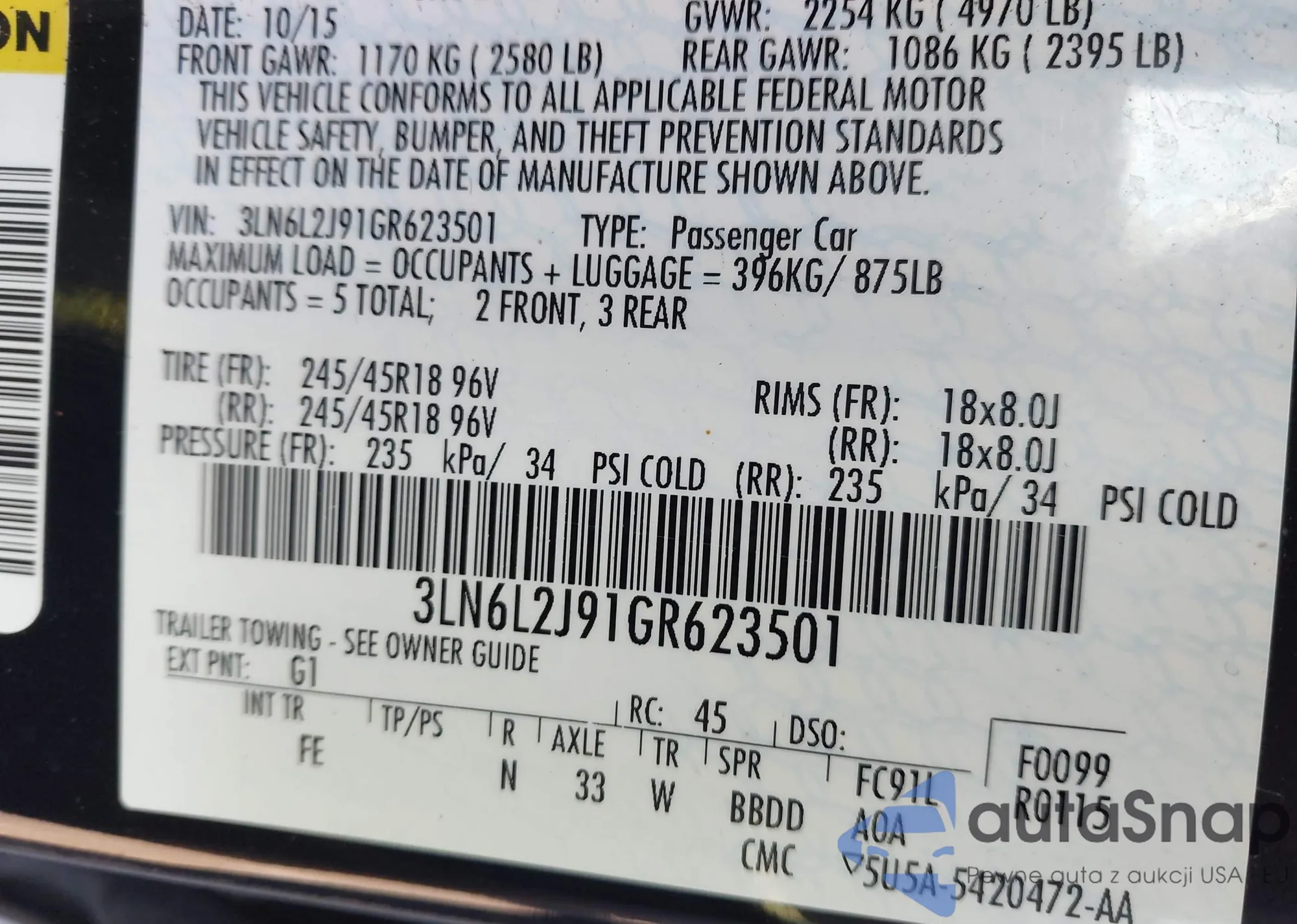 LOT: 44060416 VIN: 1FADP5BU2DL515232