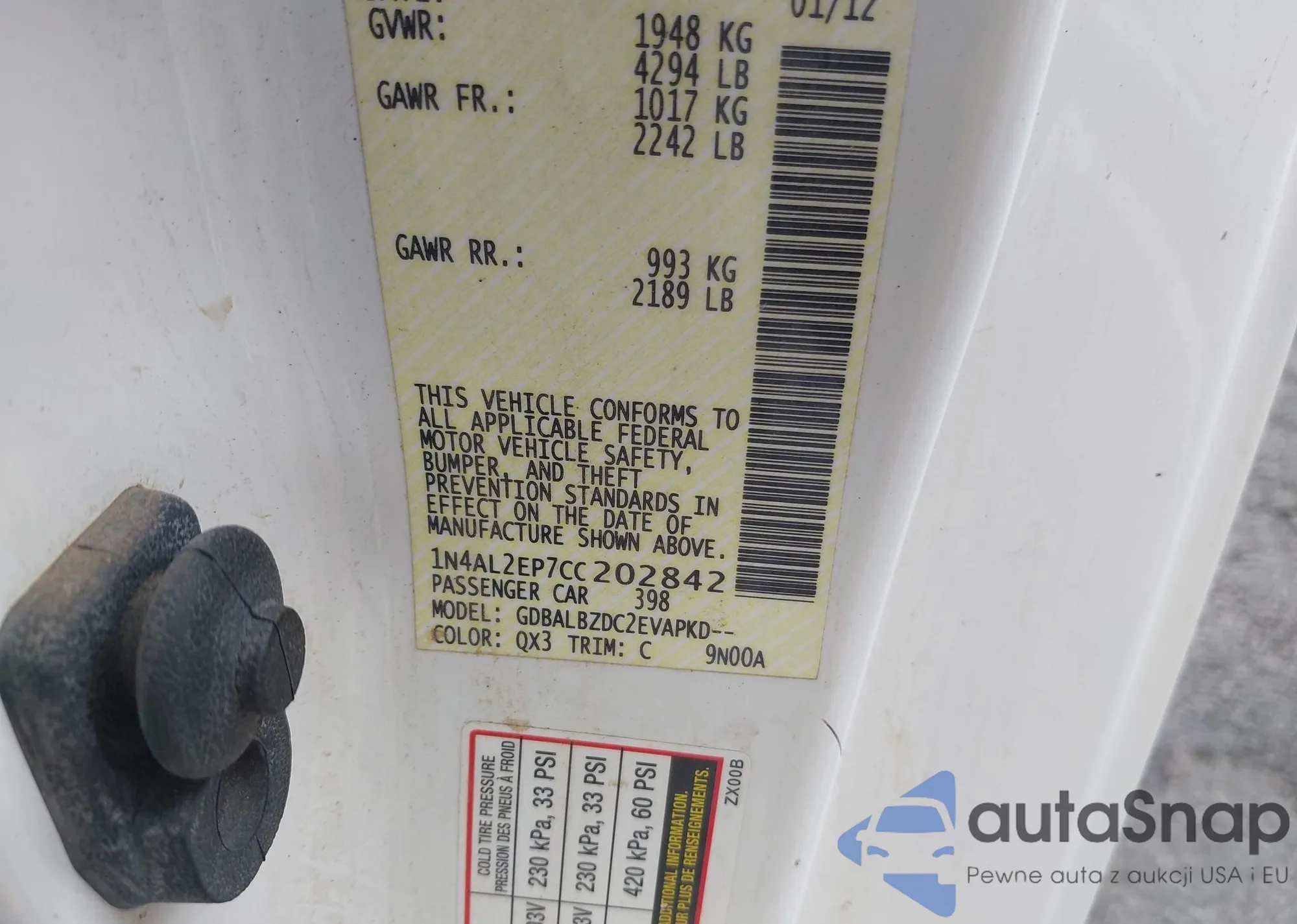 • VIN 1N4AL2EP7CC202842