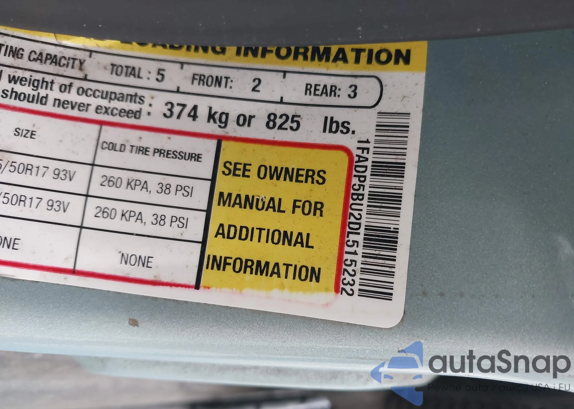 • VIN 1FADP5BU2DL515232