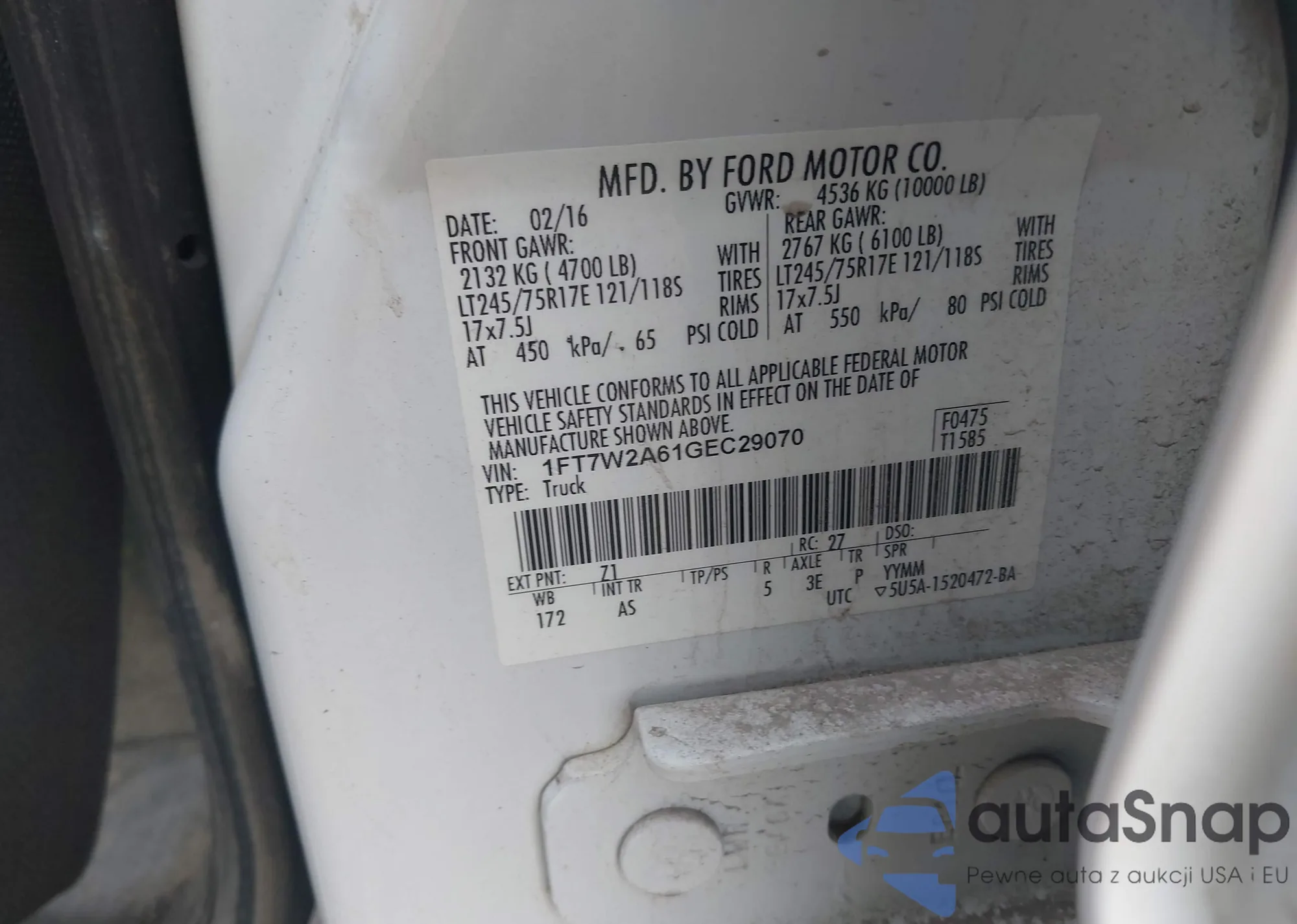 • VIN 1FT7W2A61GEC29070
