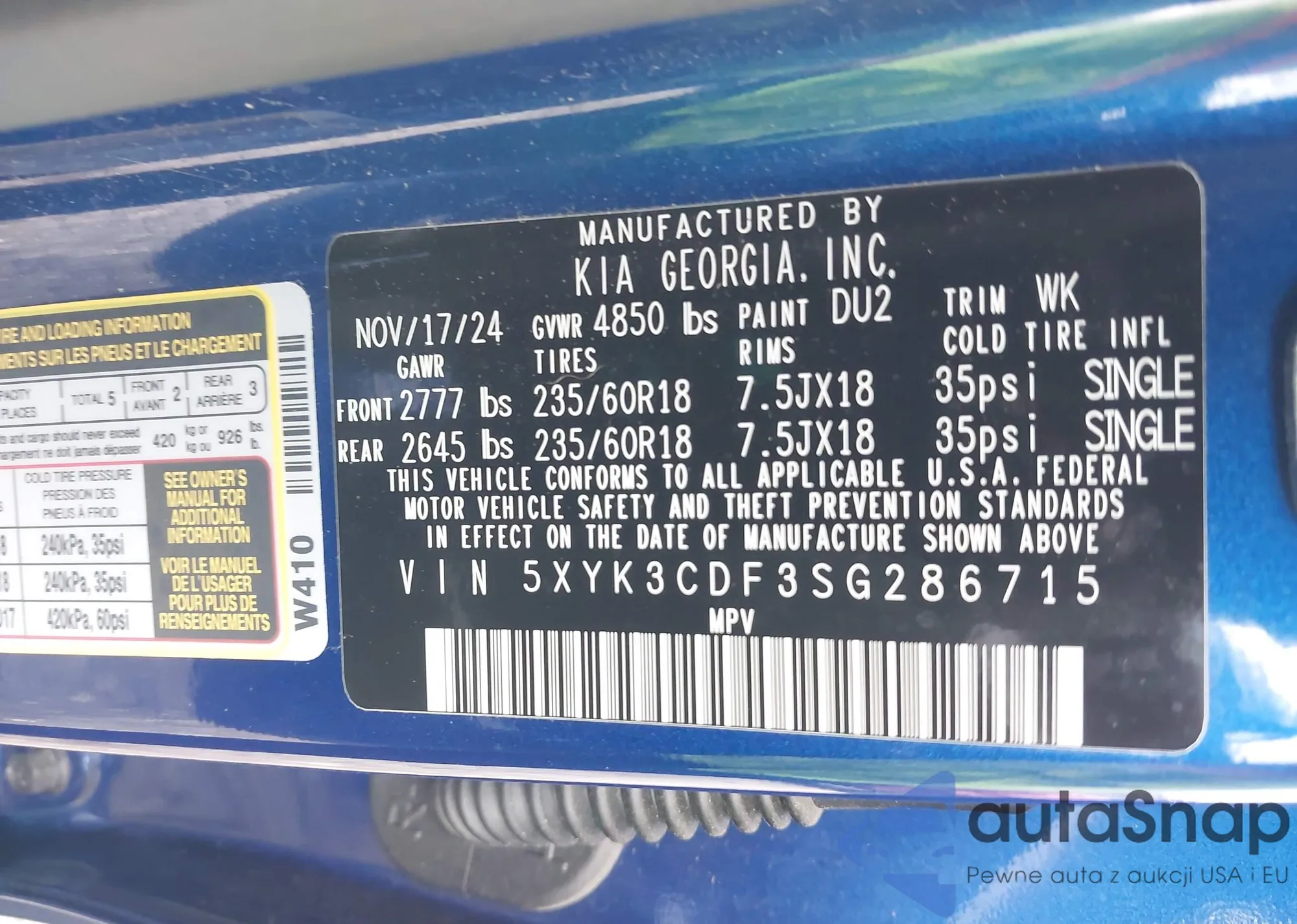 • VIN 5XYK3CDF3SG286715