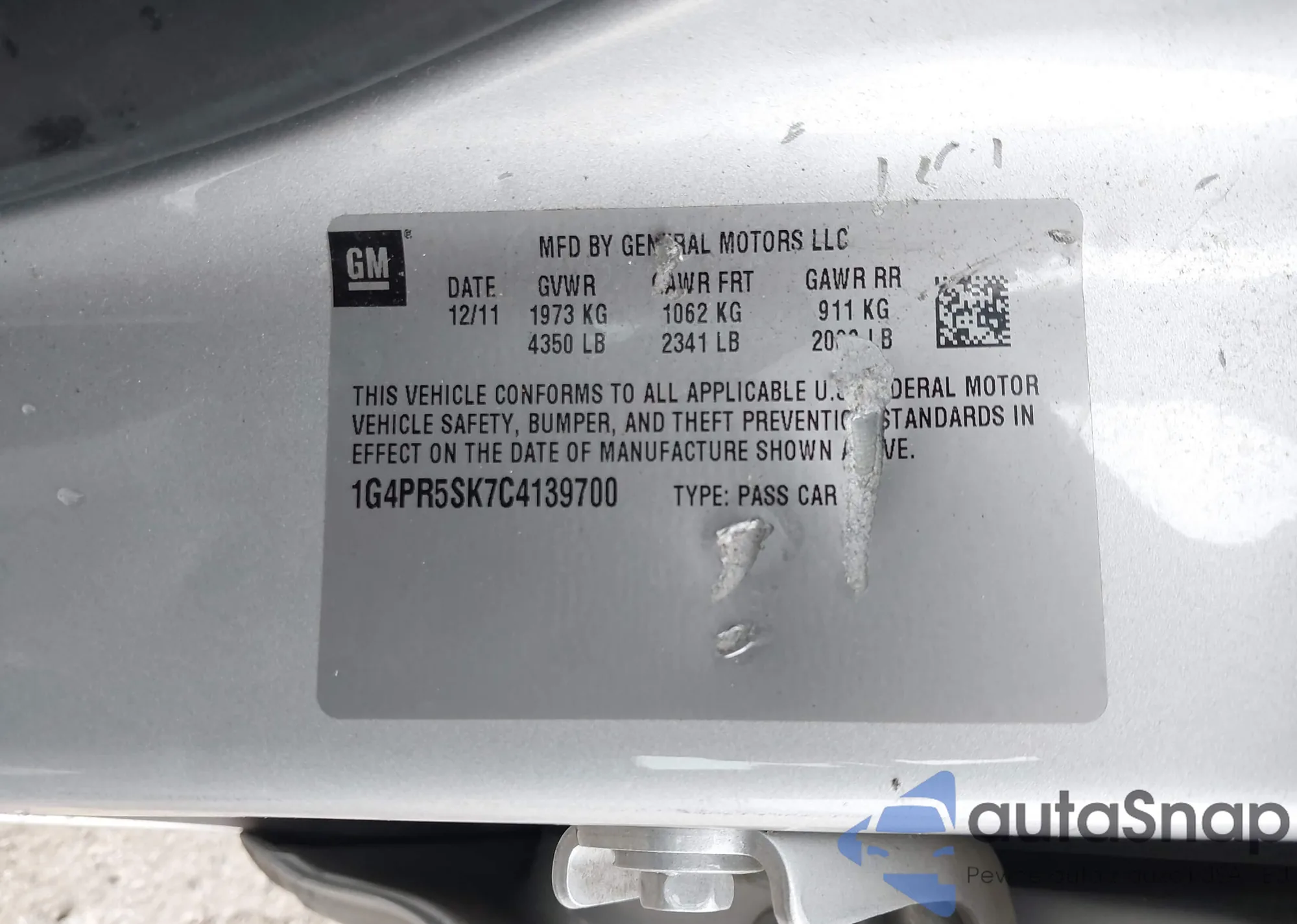 LOT: 43664480 VIN: 1G4PR5SK7C4139700