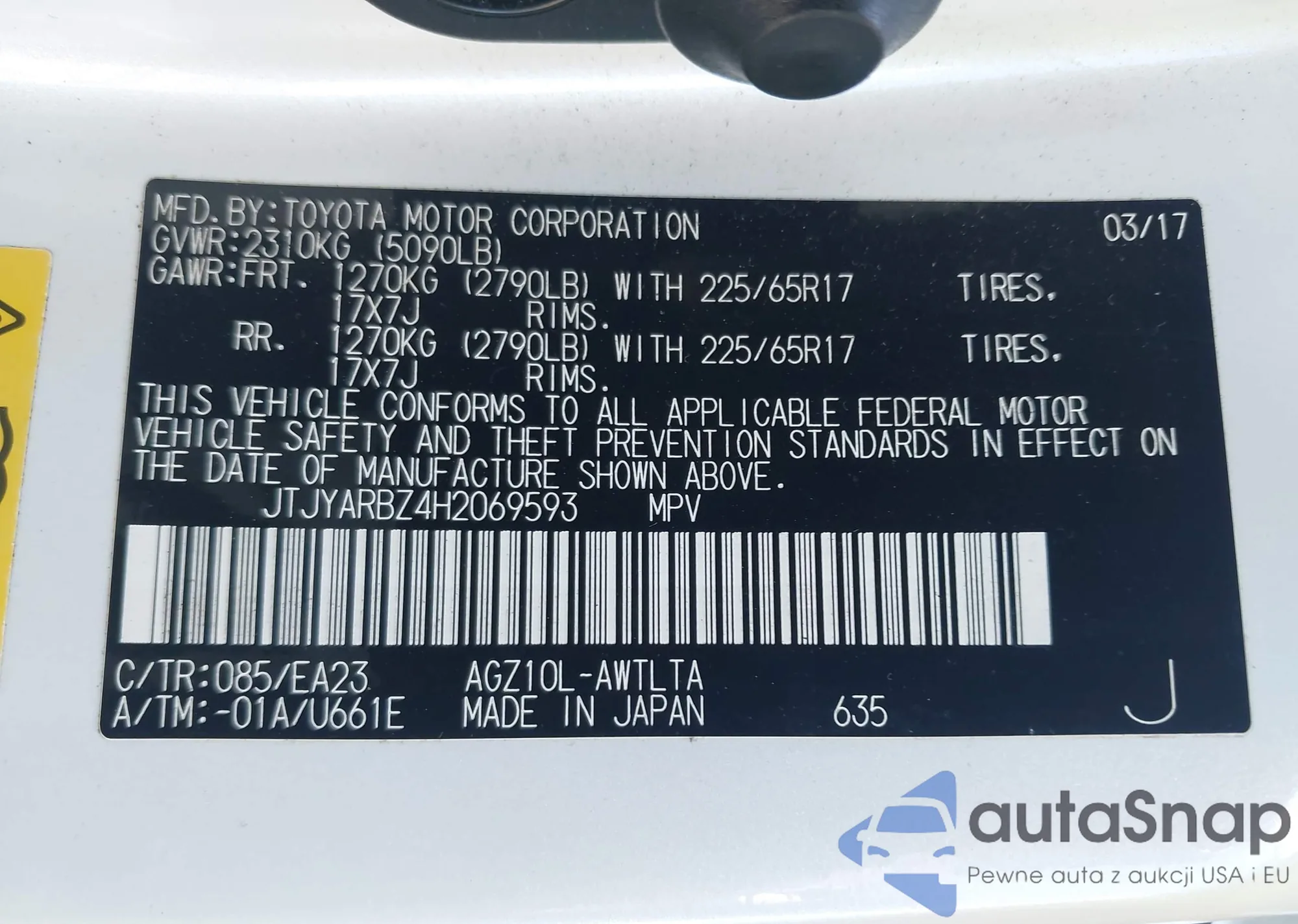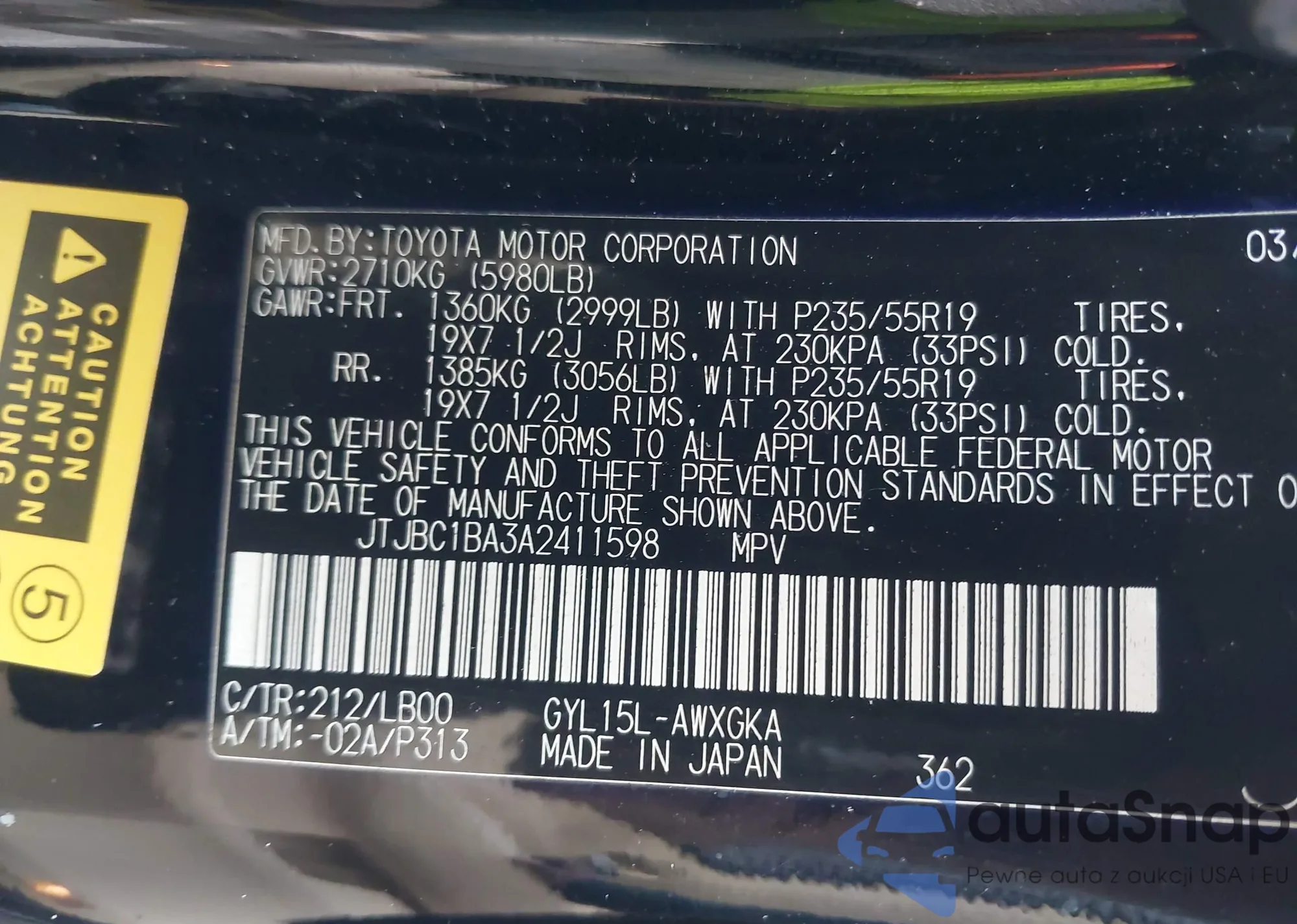 • VIN JTJBC1BA3A2411598
